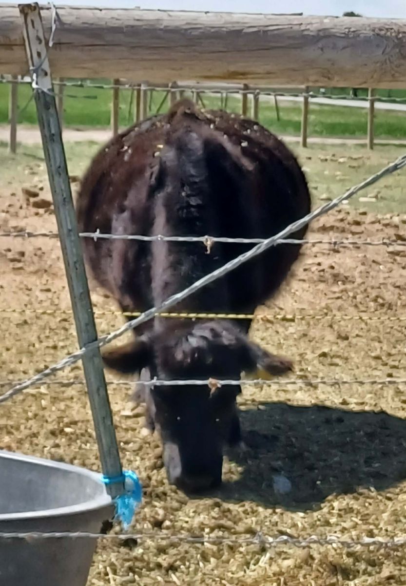 7 year old lowline cow, open, has had 4 calves. Very friendly and halter trained. Is very food motivated. Shes got a cloudy eye, but its never bothered her. Asking 2k obo. Willing to trade in part for hay.