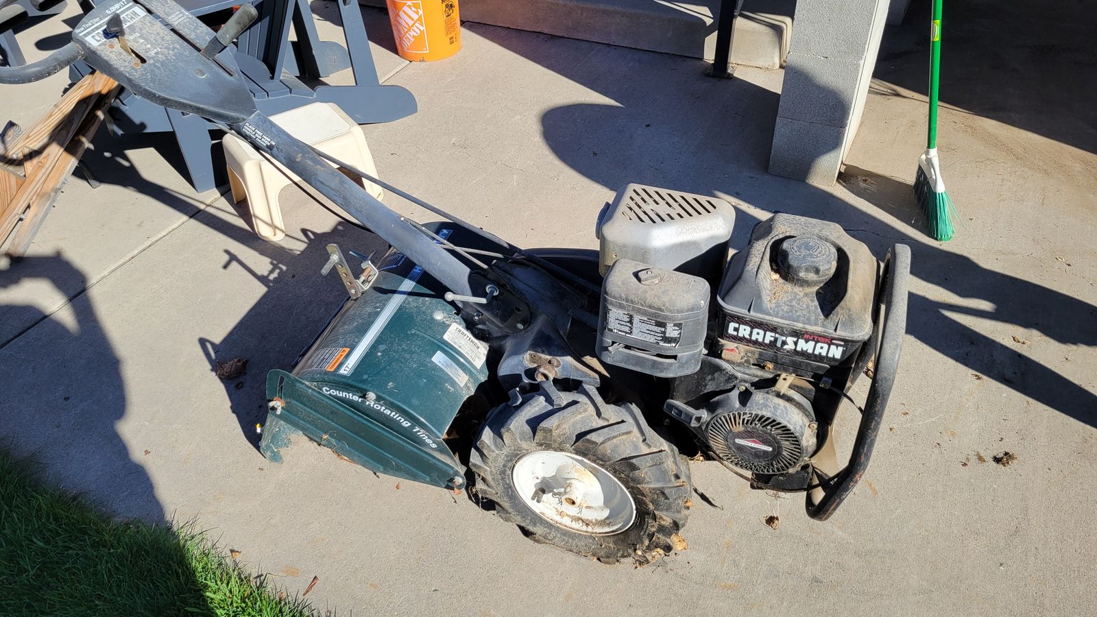 This tiller used to work well but the transmission is stuck. I believe the engine will work. It did the last time I used it about 3 yrs ago. I'm just not interested in trying to figure out how to get it unstuck. If no one wants it, in a few days it'll be recycled. I put a $5 price on it because I don't want to put it in the 'free' area of ksl where you get zillions of calls. But, essentially, it is free... if you're inclined to figure out how to get it rolling.