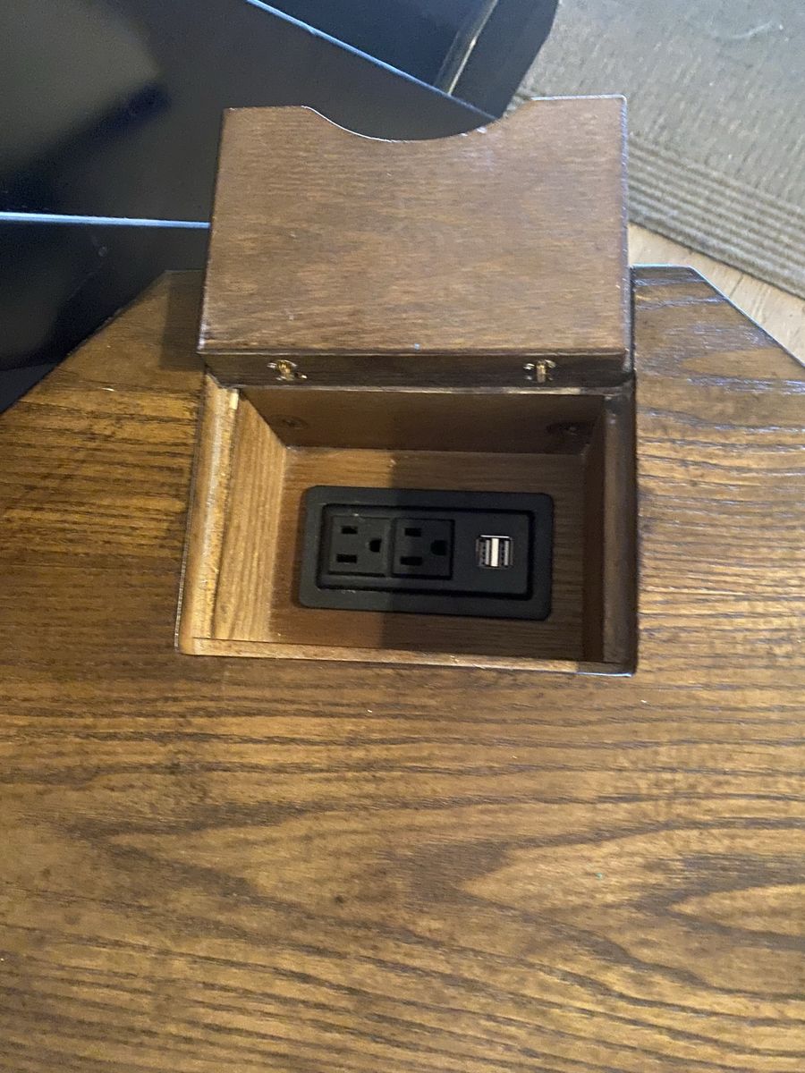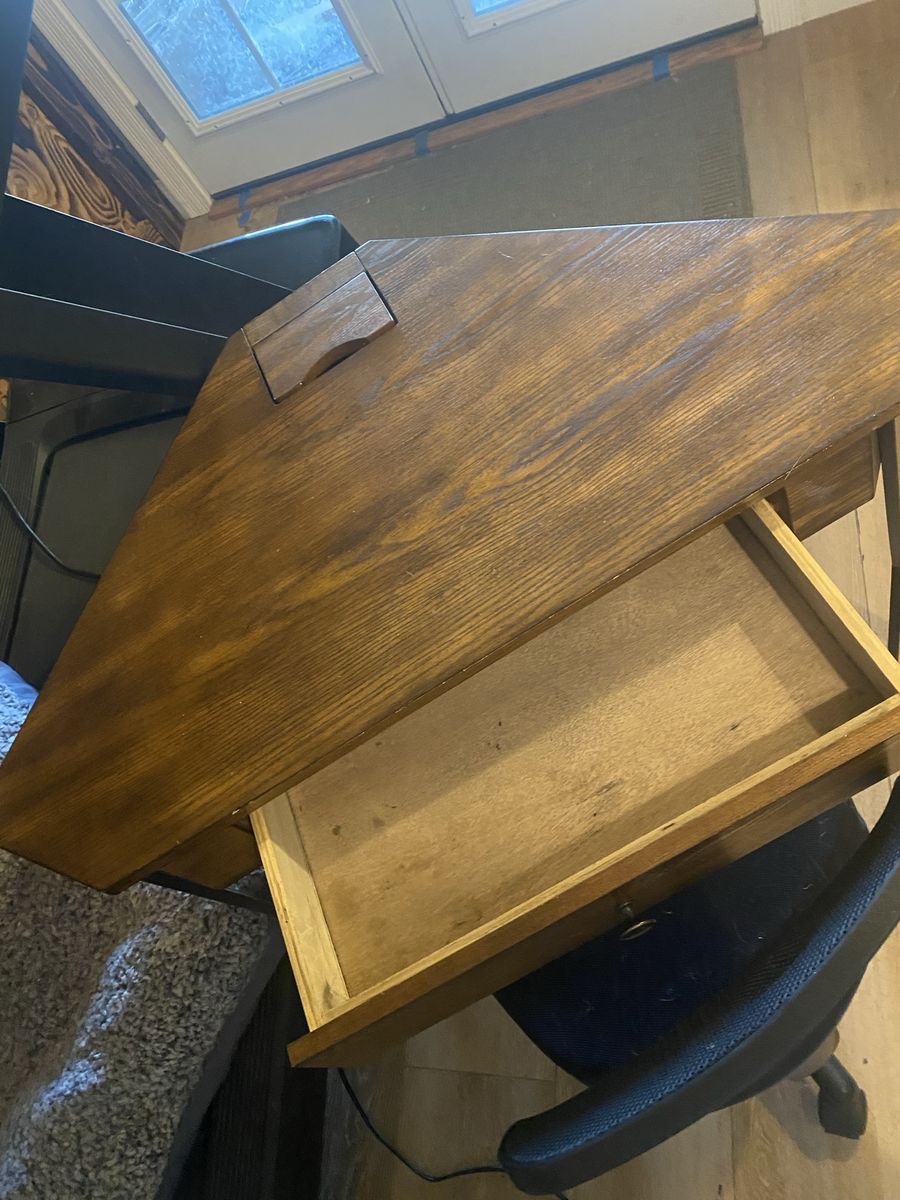 Lovely desk in great condition. Outlets work. Has a draw and it comes with the chair.