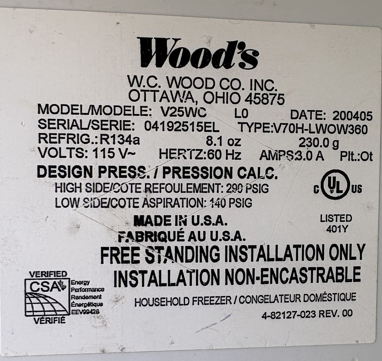 HUGE (32 CU FT) DEEP FREEZE (minus 25 °F)