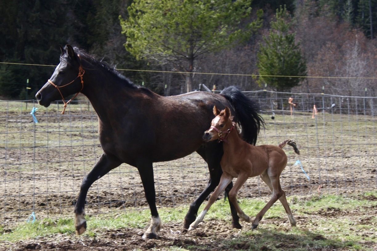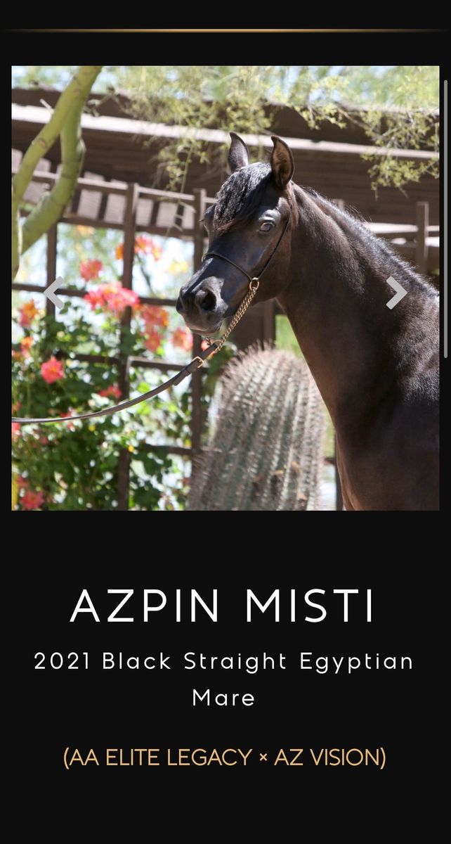 ZelleAsh was born to “Misti” a 100% Egyptian bred black mare and Alyosha a G.Grandson to RF Farid and Baha AA. This filly with her pedigree, build and personality has the brightest future! She has lovely floaty movement, built correct and has the prettiest dishy face and expressive doe eyes! Ash is estimated to mature to around 15 hands Ash will have all basics including leading, tying, loading ect and extras like desensitization work! Ash is available on payments till weaning! Don’t miss out on this amazing prospect!
