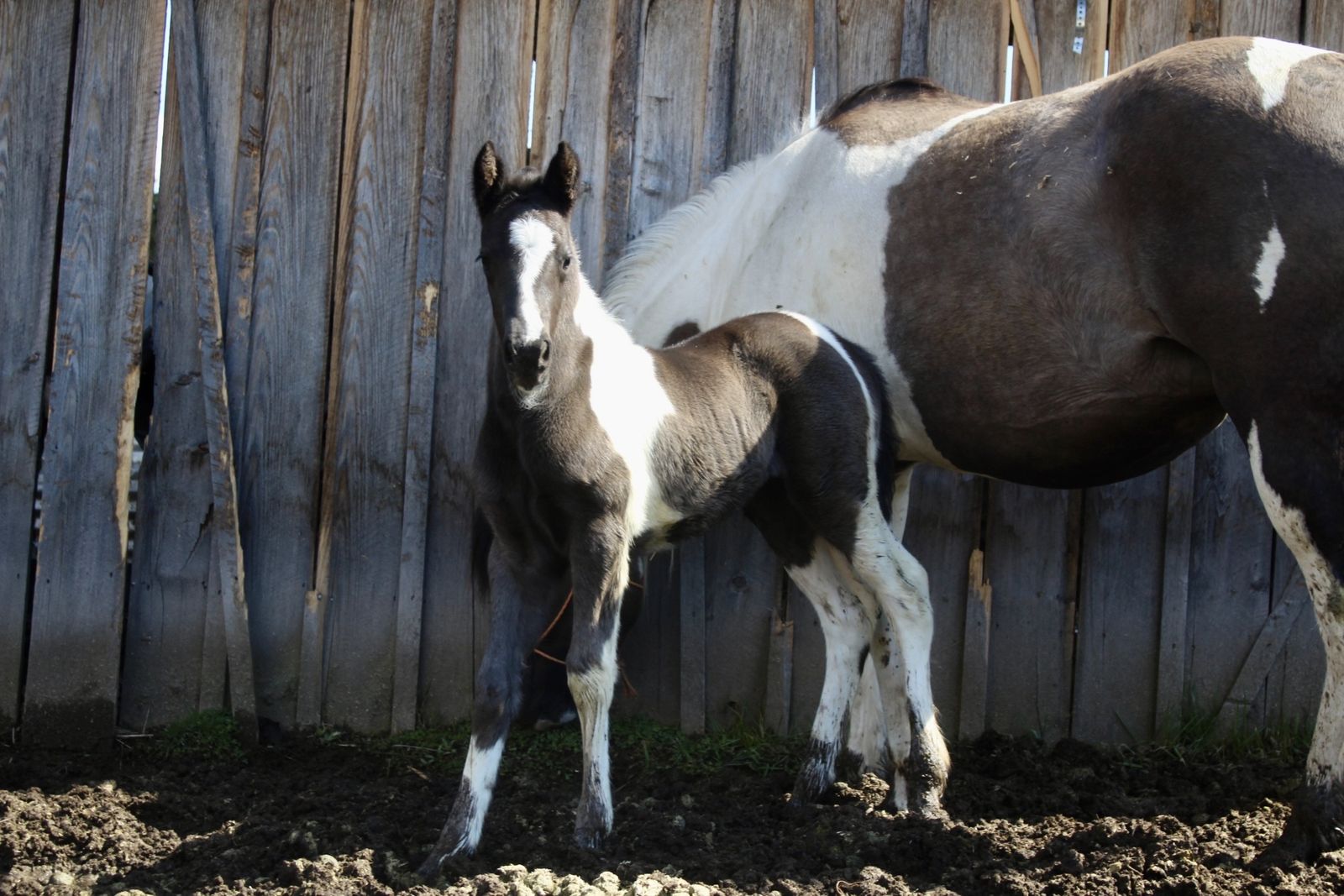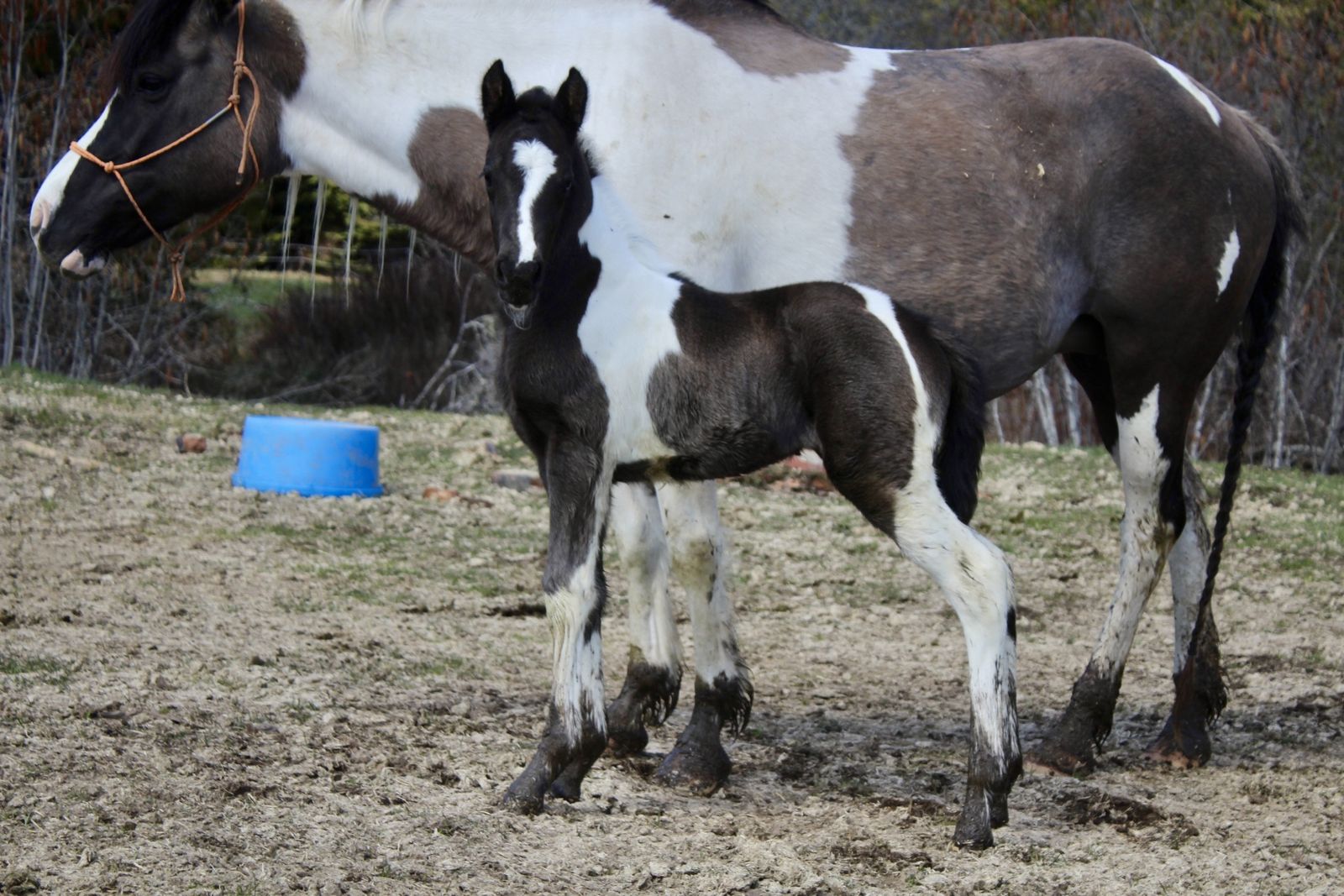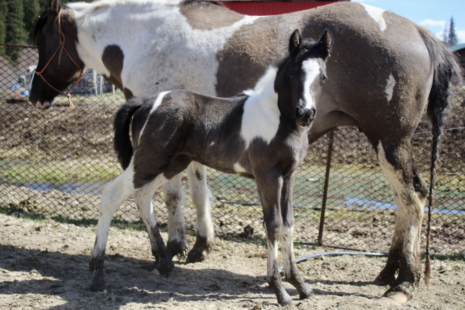 ZelleMoji is born to the gorgeous non expressive registered curly Grullo Tobiano mare “Sparrow” and Jasper 366 g. grandson Friesian stallion “La Bête du Nord” aka Mr.Wickham. Moji was born March 31st at 9:47pm from her first breath this has been the sweetest loveliest filly! She is already so personable and loves attention! She is built amazing with the Friesian build you dream of but with amazing flashy Tobiano coloring! Truly won’t see many horses like her and with her charming personality this is the horse you’ve been searching for! Sparrow is a thick build 14.2 Mr.Wickham is 15.3 and should settle to 16 hands Moji is estimated to be 15 hands or more! Moji will have all basic handling including picking up feet, leading, loading, tying ect and will have some extras like desensitization work! Moji is available on payments till weaning! Don’t miss out on this once in a life time filly!