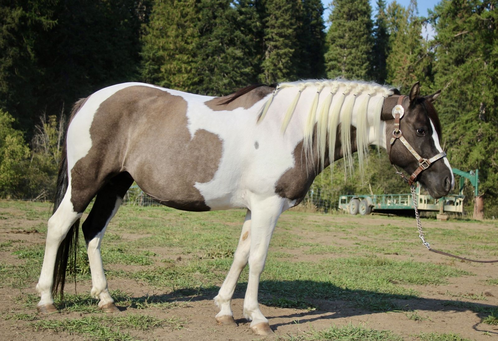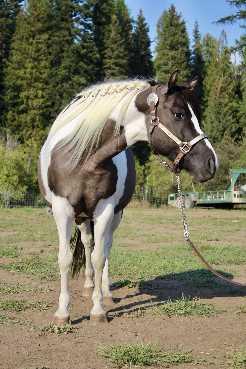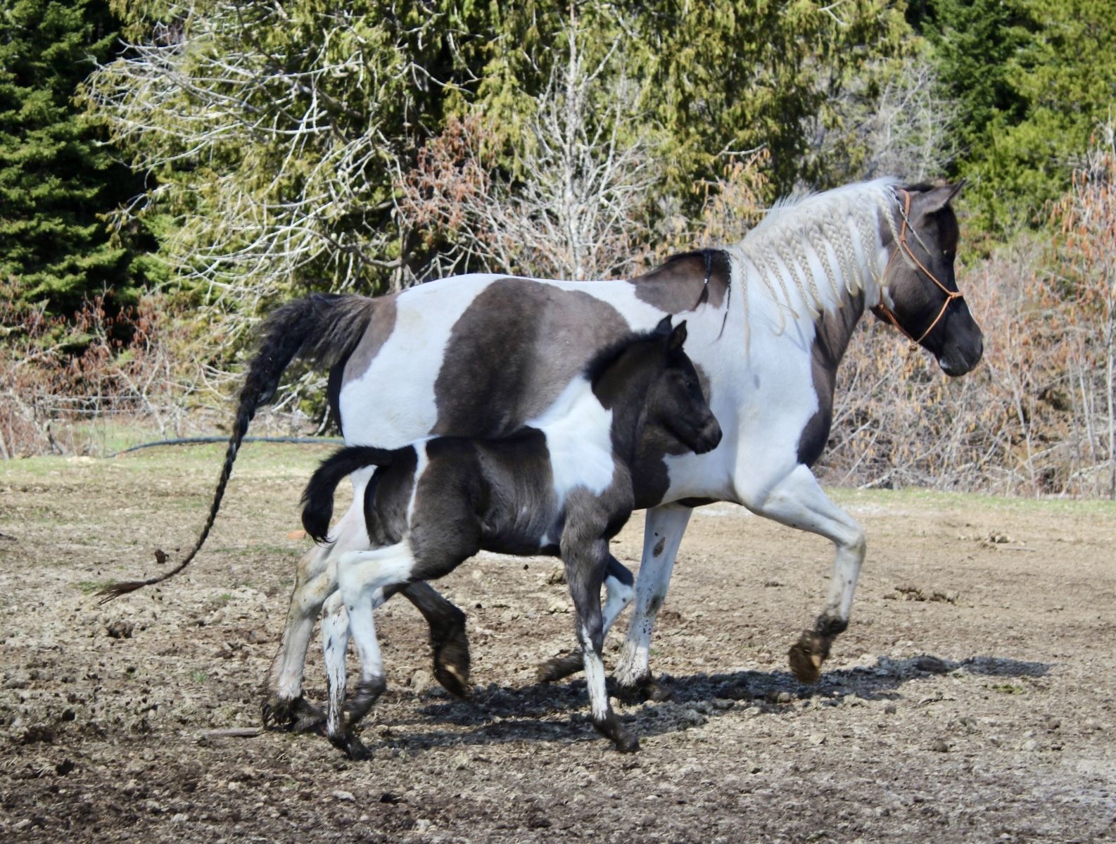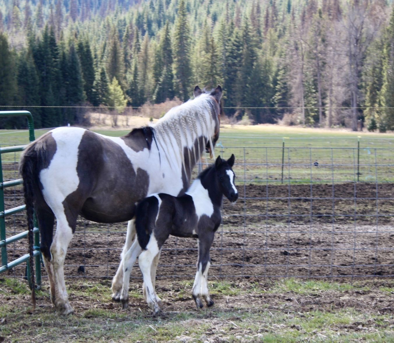 ZelleMoji is born to the gorgeous non expressive registered curly Grullo Tobiano mare “Sparrow” and Jasper 366 g. grandson Friesian stallion “La Bête du Nord” aka Mr.Wickham. Moji was born March 31st at 9:47pm from her first breath this has been the sweetest loveliest filly! She is already so personable and loves attention! She is built amazing with the Friesian build you dream of but with amazing flashy Tobiano coloring! Truly won’t see many horses like her and with her charming personality this is the horse you’ve been searching for! Sparrow is a thick build 14.2 Mr.Wickham is 15.3 and should settle to 16 hands Moji is estimated to be 15 hands or more! Moji will have all basic handling including picking up feet, leading, loading, tying ect and will have some extras like desensitization work! Moji is available on payments till weaning! Don’t miss out on this once in a life time filly!