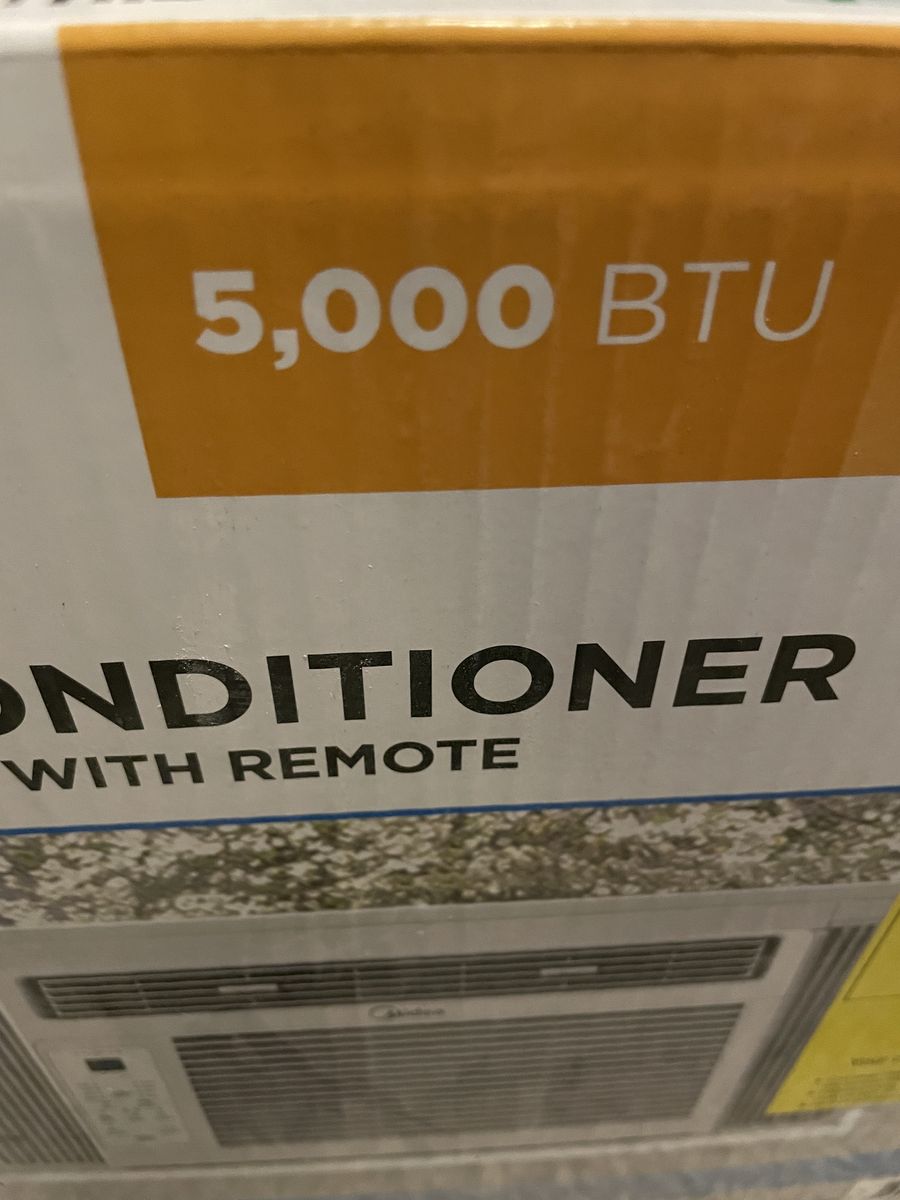 New Midea window mount air conditioner. 5000 btu, for room size up to 10'x15', plugs into standard power outlet. Uses less than 500 watts. Remote control included. Asking $100. Cash only. No venmo. Contact John at 801 7876415. text or call. No emails. Local sale. Located in Eagle Mountain, utah.