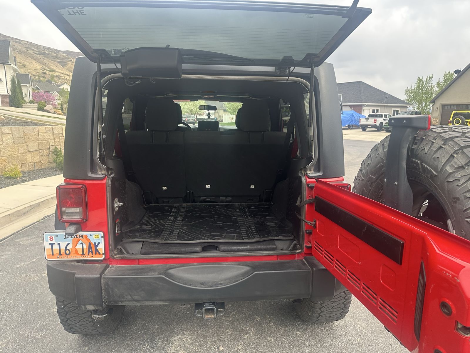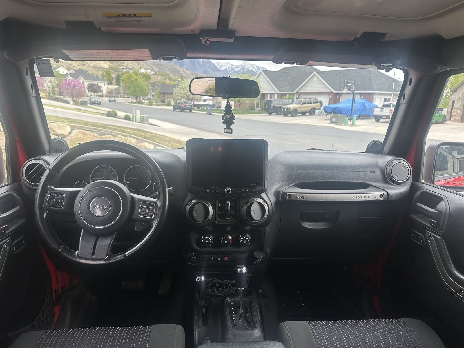 Large touchscreen with Apple CarPlay Backup camera + side cameras (great for parking and off-road) Aftermarket wheels and tires Clean interior Removable top for summer 4x4 – perfect for Utah weather and trails