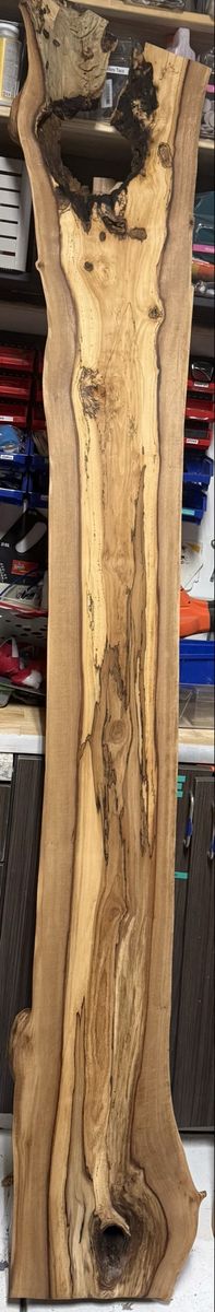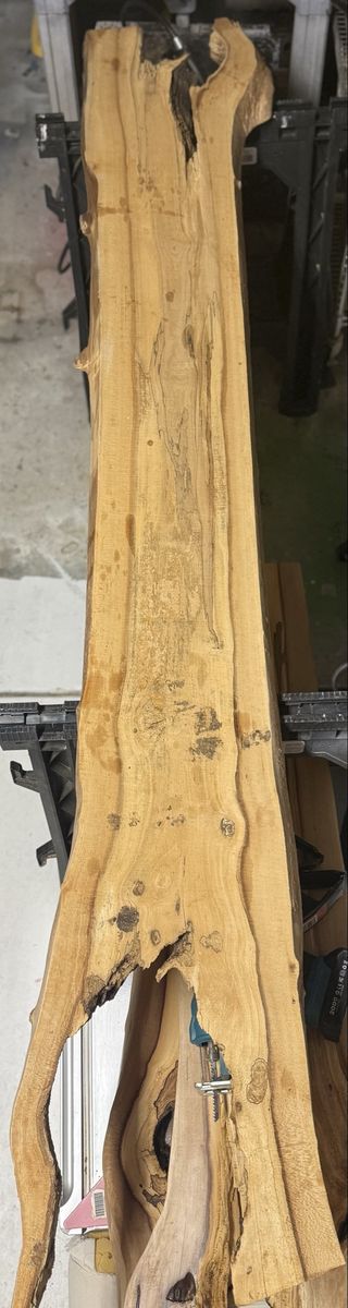 Picture four: this piece has been sanded down with one layer of oil and polyurethane topcoat in satin finish. I am not planning on finishing this so this will be sold as is. Length: 90 1/2 inches Width: 11 1/2 inches Thickness: 2 1/8 inches $650