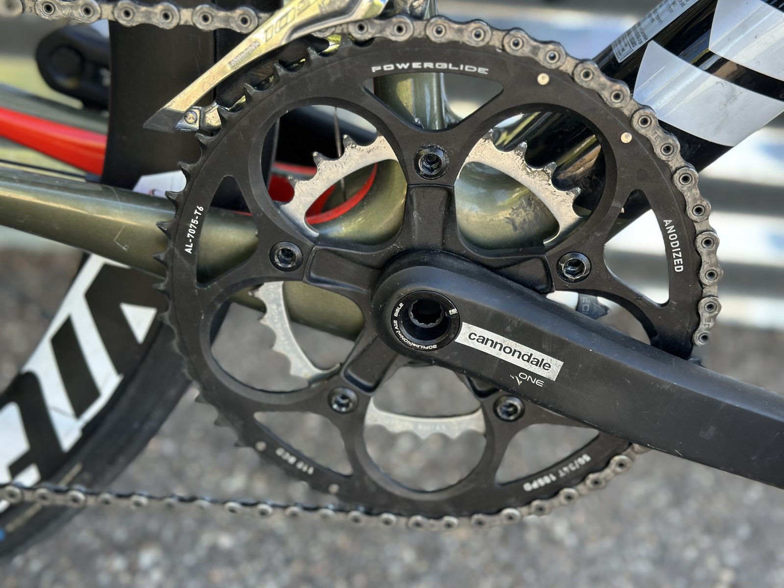 • The bike has the Cannondale Superlight Hi-MOD frame, which was swapped out by Cannondale under a warranty exchange. Super light!