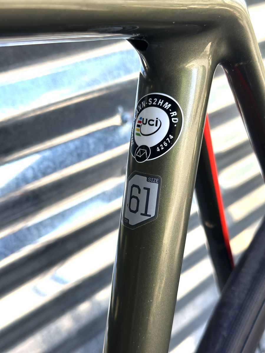 The bike has the Cannondale Superlight Hi-MOD frame, which was swapped out by Cannondale under a warranty exchange. Super light!