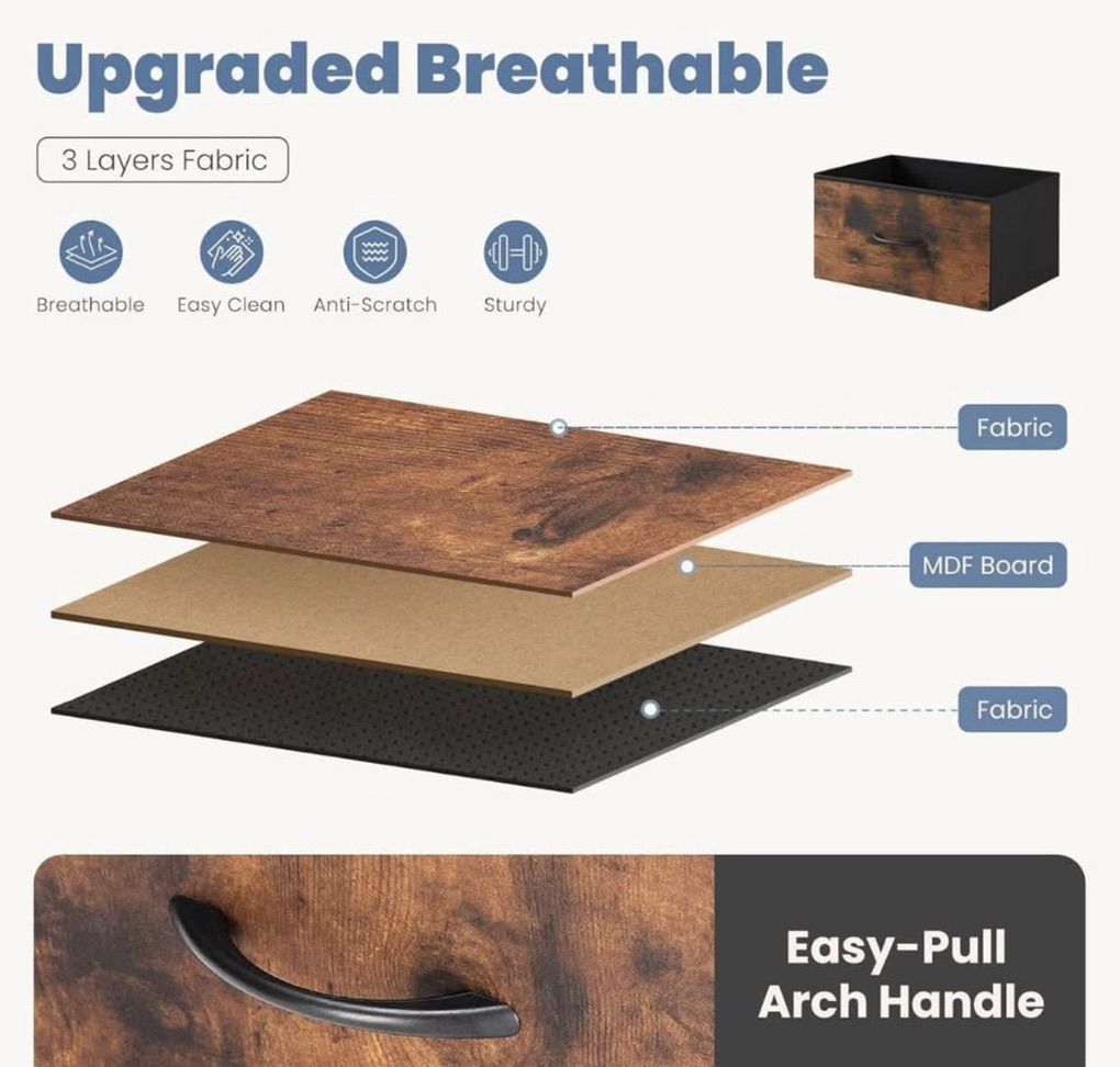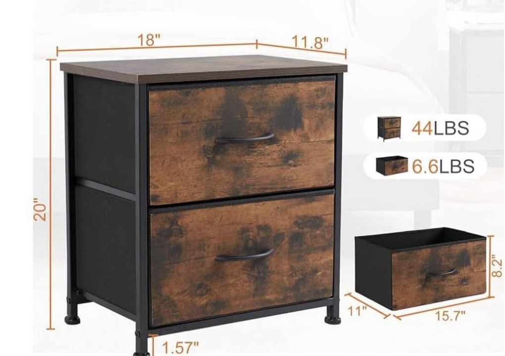 Features: • Modern Design — 2 smooth-glide fabric drawers for easy storage • Versatile Use — perfect for bedrooms, living rooms, offices, or guest rooms • Neutral Style — sleek, minimalist look that complements any décor