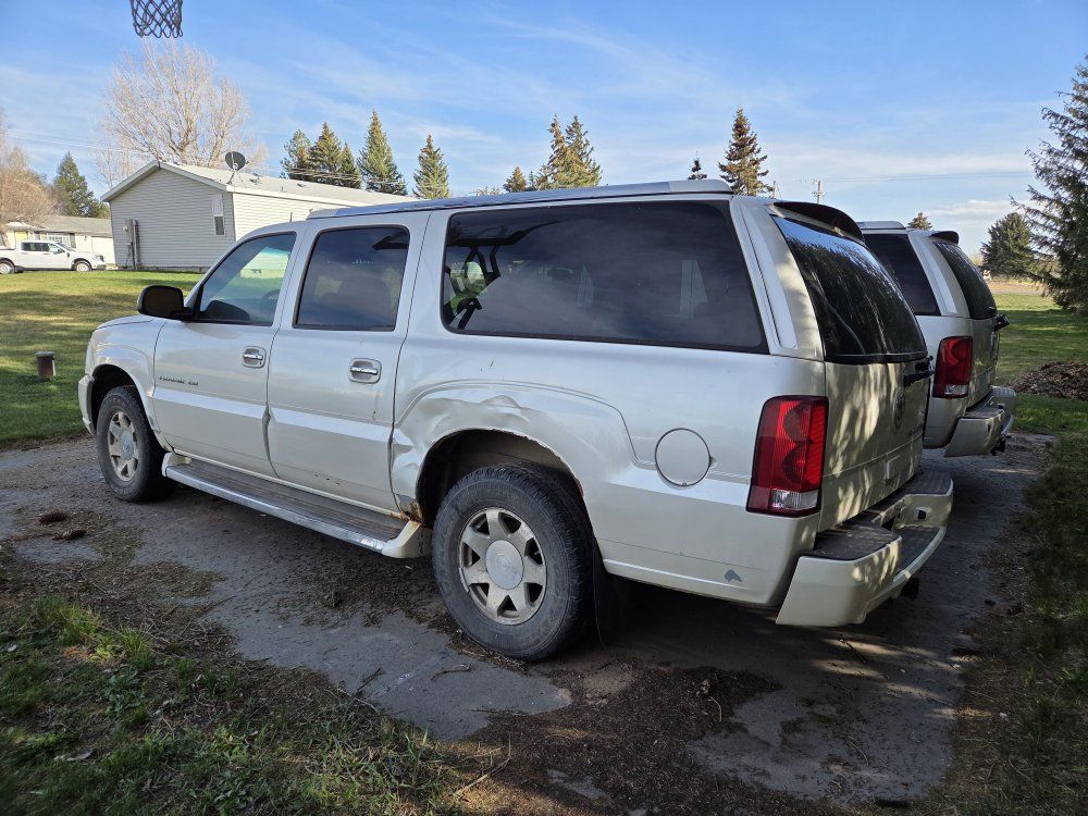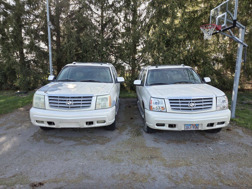 ZelleI have two 2005 Cadillac Escalade ESVs for sale. They are complete and they run/drive. I drove one for two years with a strong engine but missing 3/4 gears. The other drives but has a check engine light. $3,000 each or $5,000 for both.