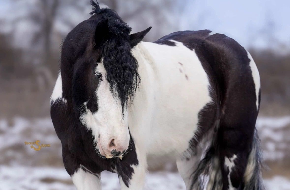 One look is all it takes to realize Wasatch is truly one of a kind. Standing a substantial 16hh, Friesian/Gypsy Vanner/ Percheron cross this 6-year-old gelding is the horse that stops everyone in their tracks. From his flowing mane and kind eye to his perfectly styled mustache, he makes people stop and stare.