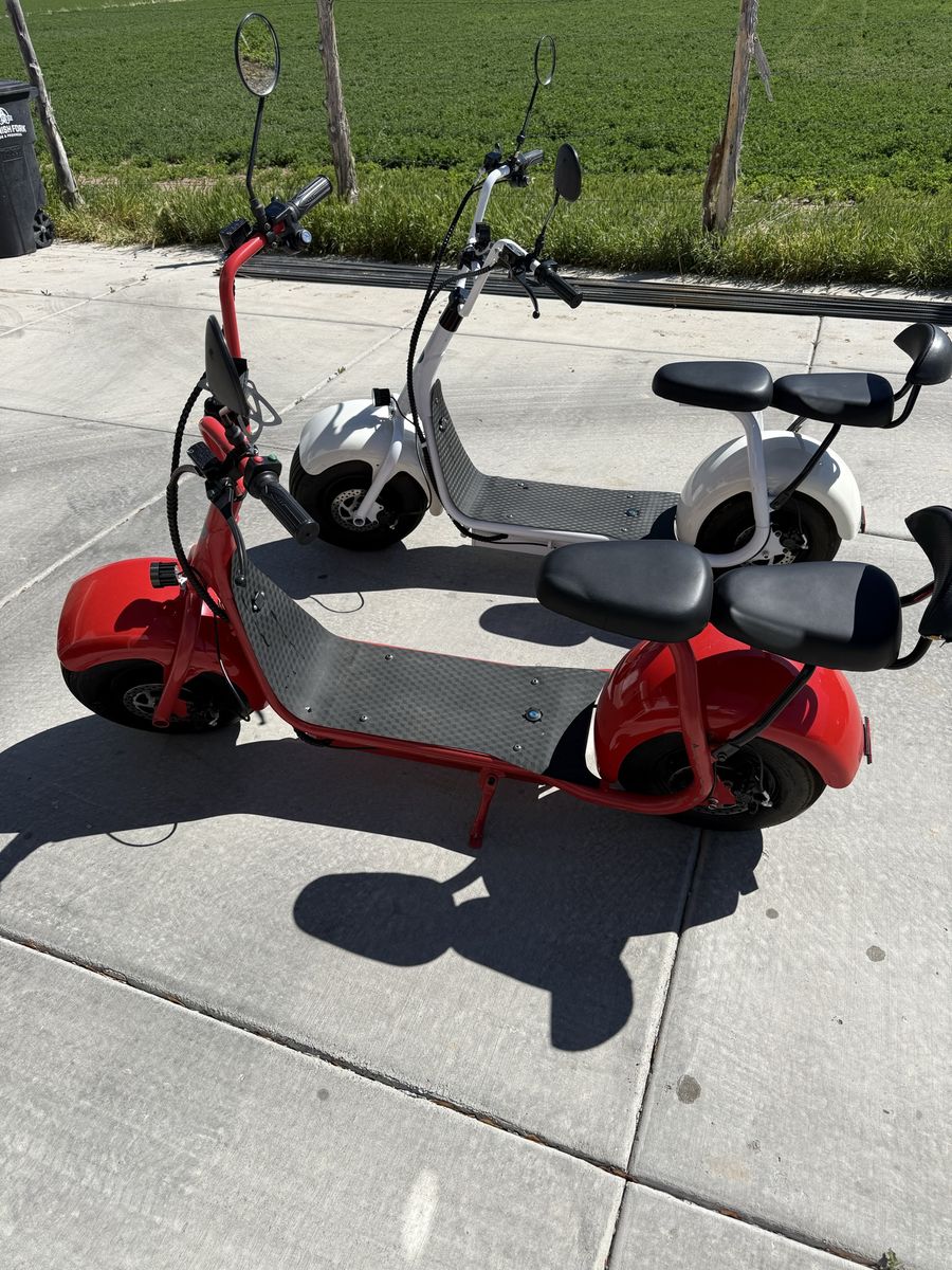 ApplePay$800 for both! Lloyd models with upgraded extended seat for 2 people. Has standard wear and tear and both run fine. White scooter back tire loses a little air over time, so it most likely has a leak. Recently purchased some other electric toys, so no longer in need of these. Perfect neighborhood toys to cruise around the neighborhood. Price reflects motivation to sell. Call or text is fine. 801-512-3214