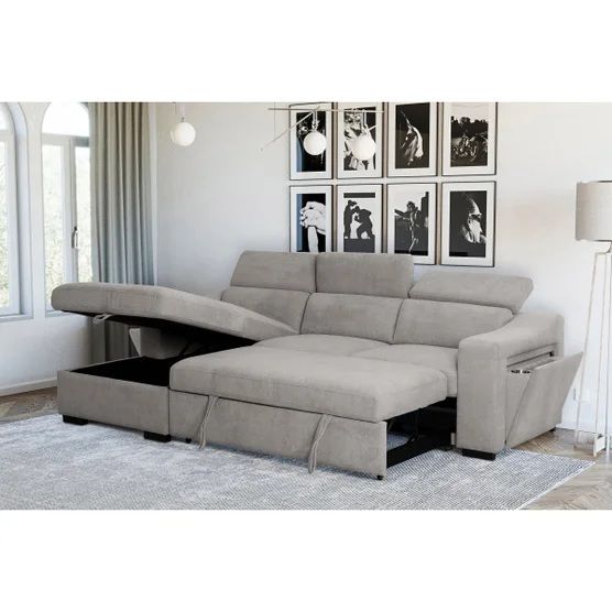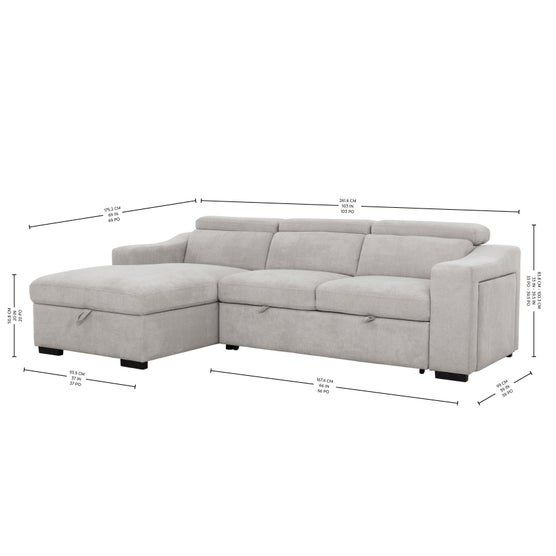 Roxana Fabric Sleeper Sofa with Storage Chaise