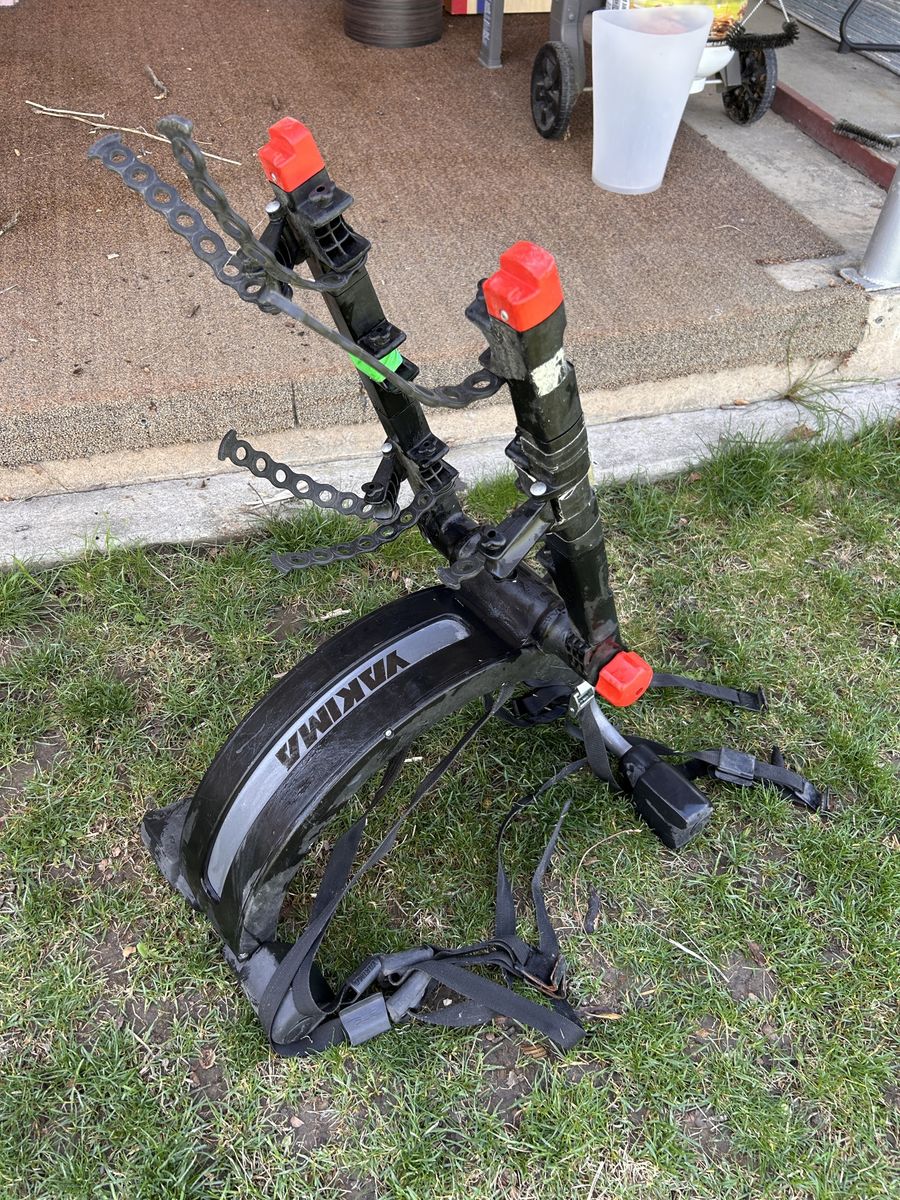 Could hold three bikes, but currently has bungee straps for two bikes. I used this to carry bikes on my hatchback.
