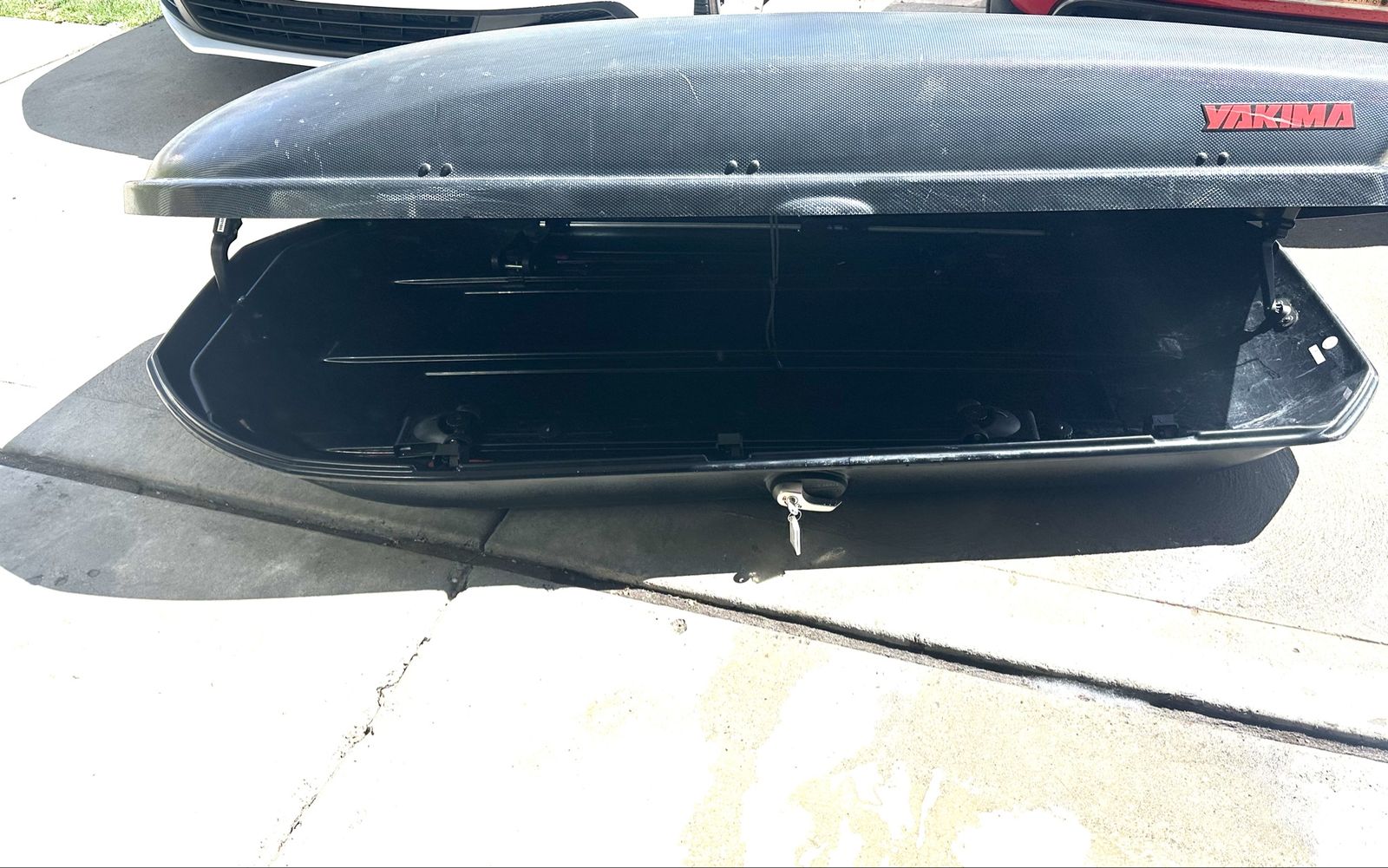 Yakima Topper Skybox 16 cubic ft 80”(l) x 34(w) x 18 (h) One key Great condition no problems