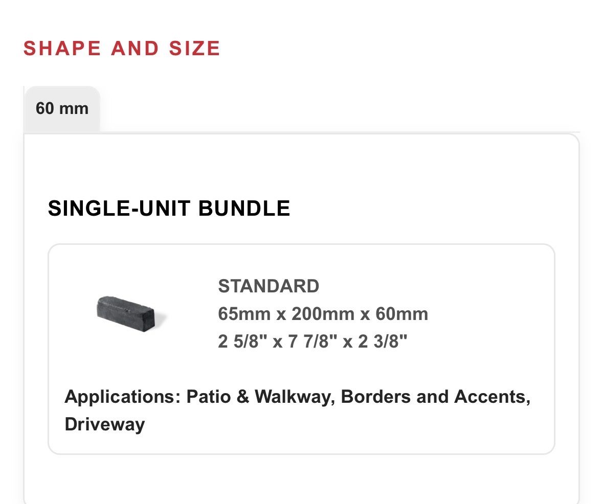 Each brick measures 7.5 inches by 2.5 inches by 2.5 inches. Refer to the provided image for the exact specifications from the website.