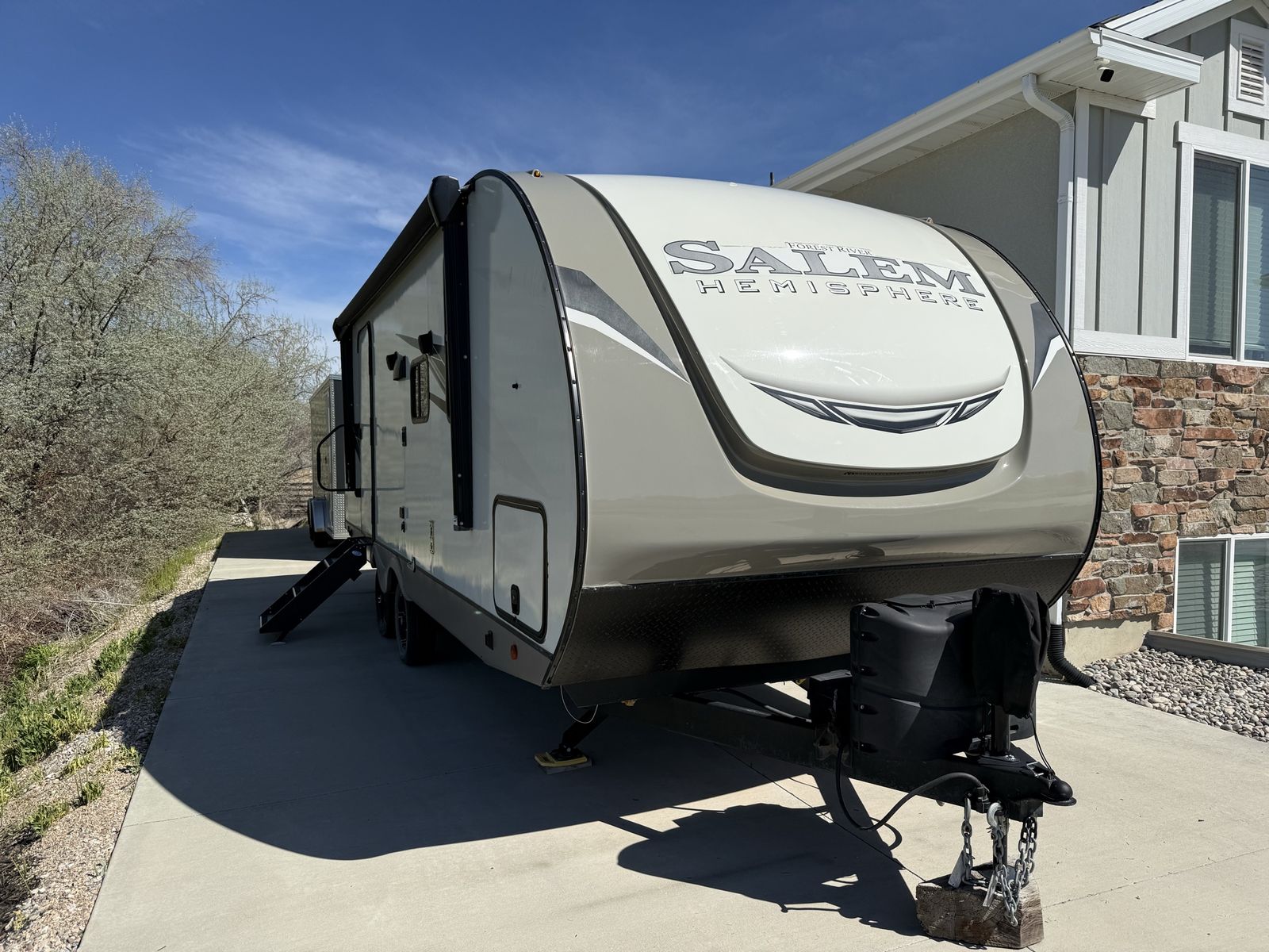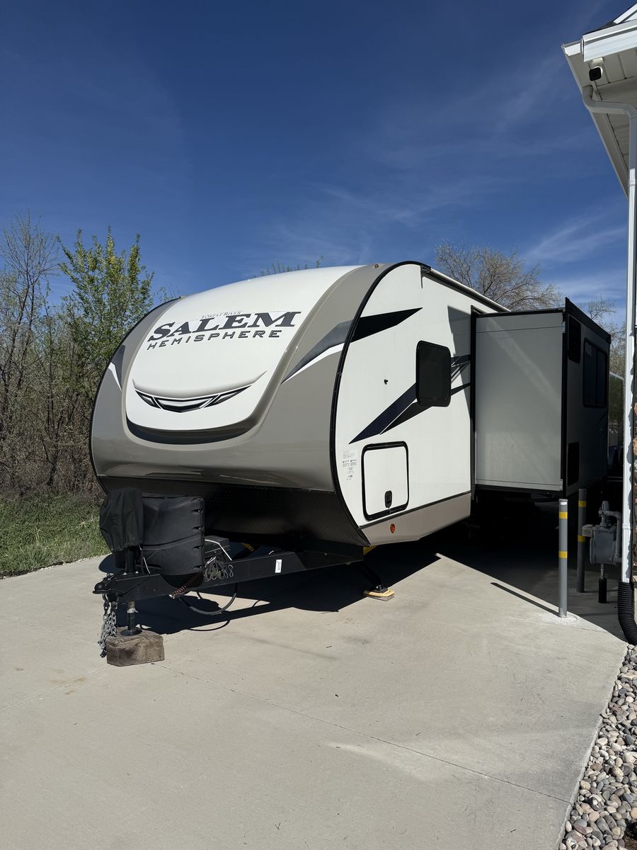 Selling my 2023 Forest River Salem Hemisphere 22RBHL in excellent condition. This is a super clean modern, lightweight travel trailer with a great layout huge bathroom and several nice upgrades already done. I will include lots of extras so Everything is ready to go for your first trip. This trailer has been well kept and is a great option for weekend trips, family camping, or longer stays without needing to spend new-RV money. Highlights / Features • Solar panel • Heavy duty stabilizer hitch can be negotiated into the sale • Upgraded kitchen faucet • Upgraded TV • Upgraded shower head • Sound bar • Upgraded thermostat • Modern interior • Lightweight and easy to tow for its class • Great use of space and storage • Clean inside and out • Everything is in great shape • Clean interior • No major issues • Ready to camp •Keyless Entry