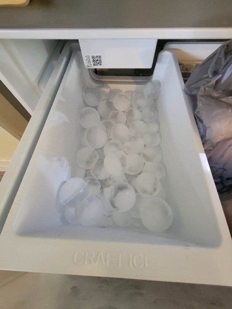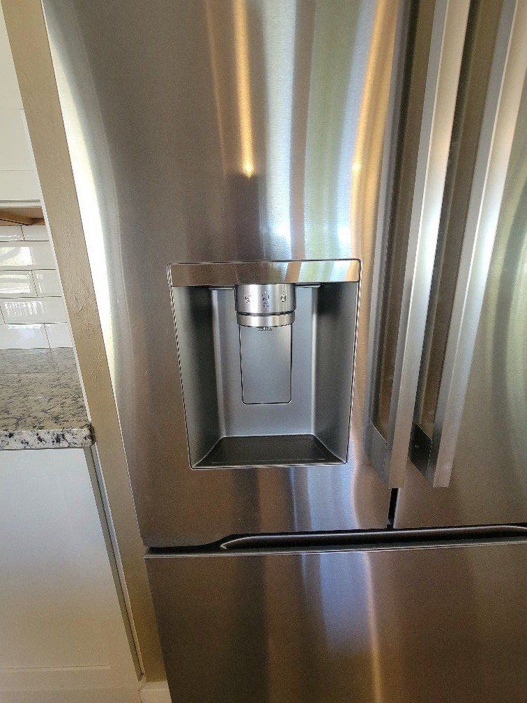 Venmo3 French door 3 ice sizes New July 2026 print proof stainless steel very small dent on bottom of freezer