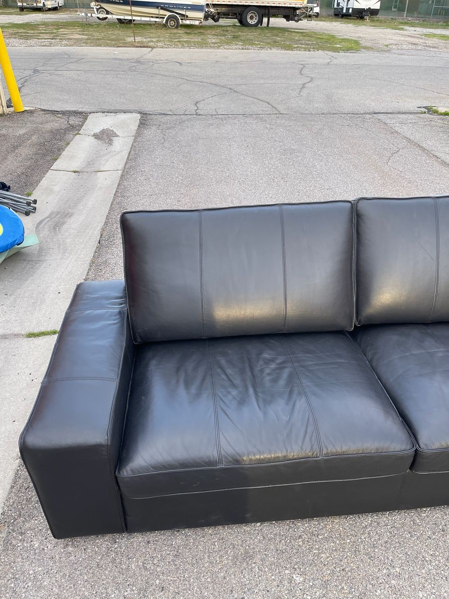 VenmoSelling a modern, low-profile black leather 3-seater sofa. Very comfortable and fits a clean, minimalist aesthetic.
