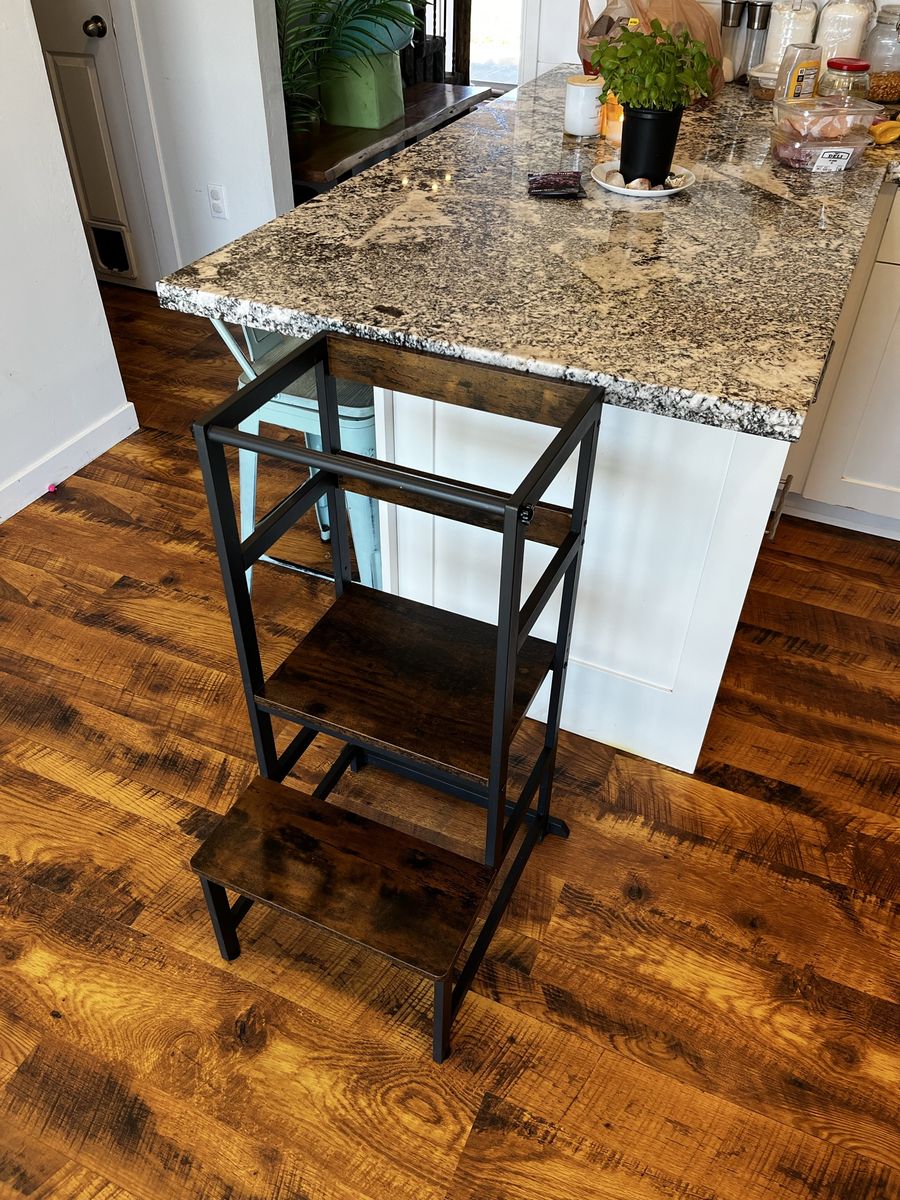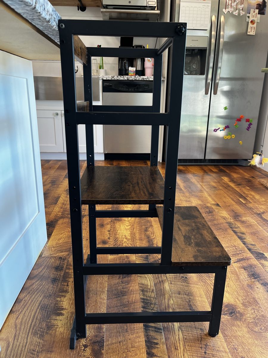 VenmoToddler tower in excellent condition. Ready to go to the next home. It has been thoroughly cleaned and screws have been checked and tightened. Our daughter used this to participate with kitchen and art activities for over a year. I highly recommend this tower. Super sturdy. I also just added some fresh felt pads to the bottom for the next owner :)