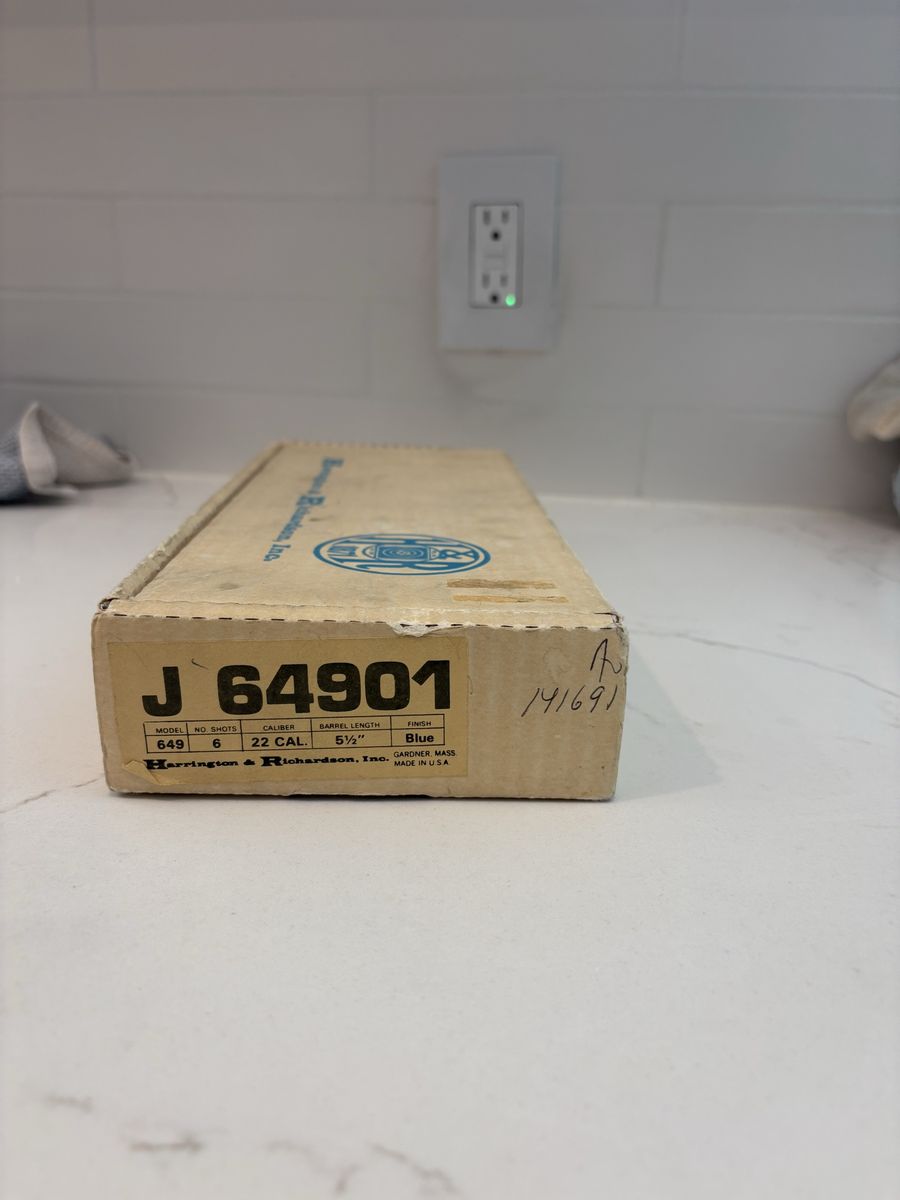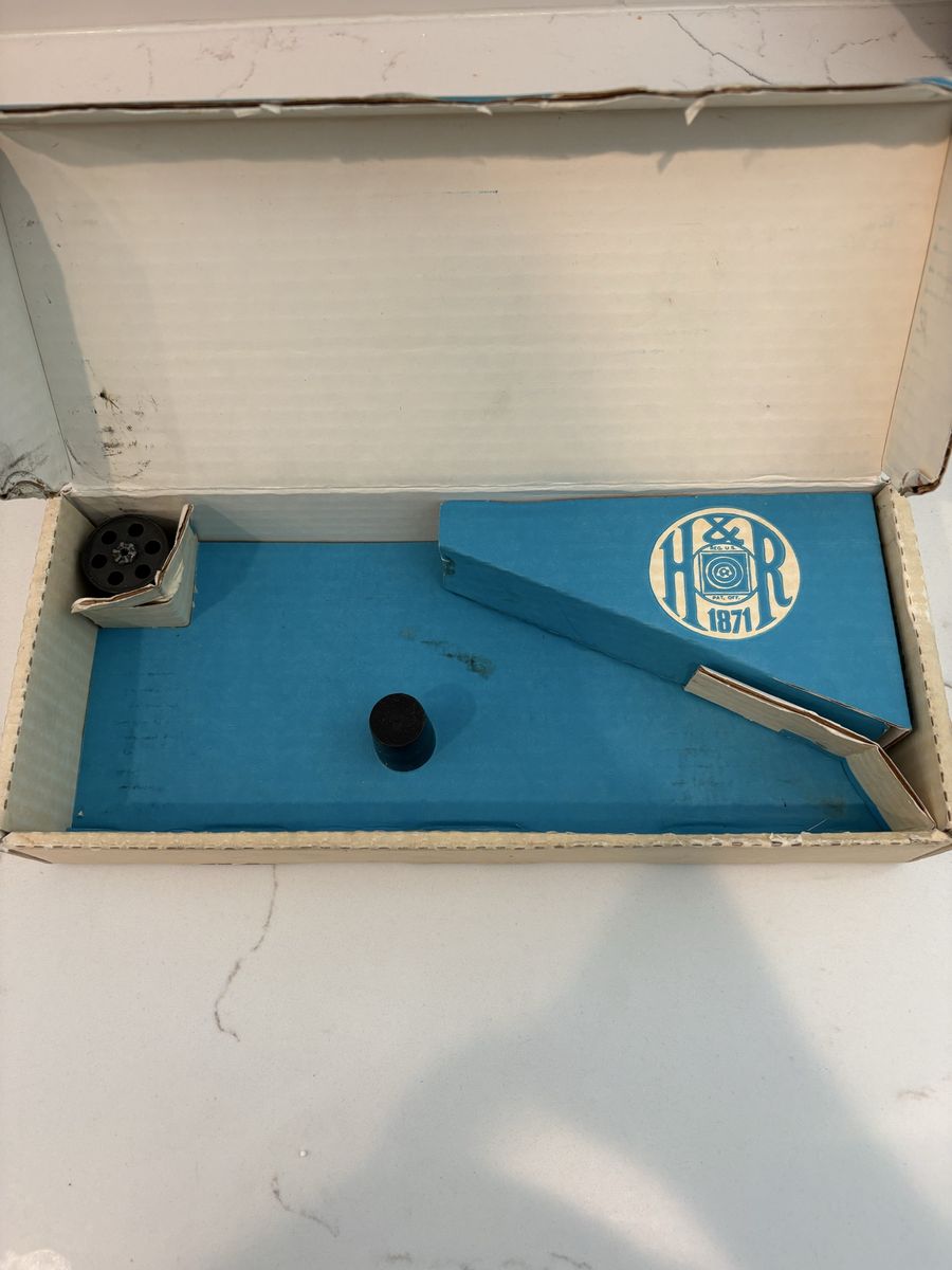 I have a .22 caliber long rifle cylinder for a Harrington & Richard’s Model 649, 6 shot, .22 caliber pistol. I also have the original box for the gun. The .22 caliber long rifle cylinder is in really good shape. I’m asking $50 dollars OBO for the cylinder. (Cash Only)