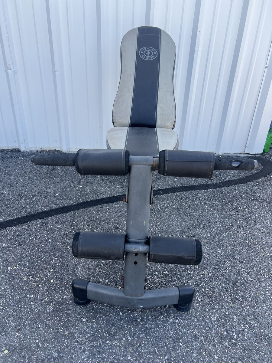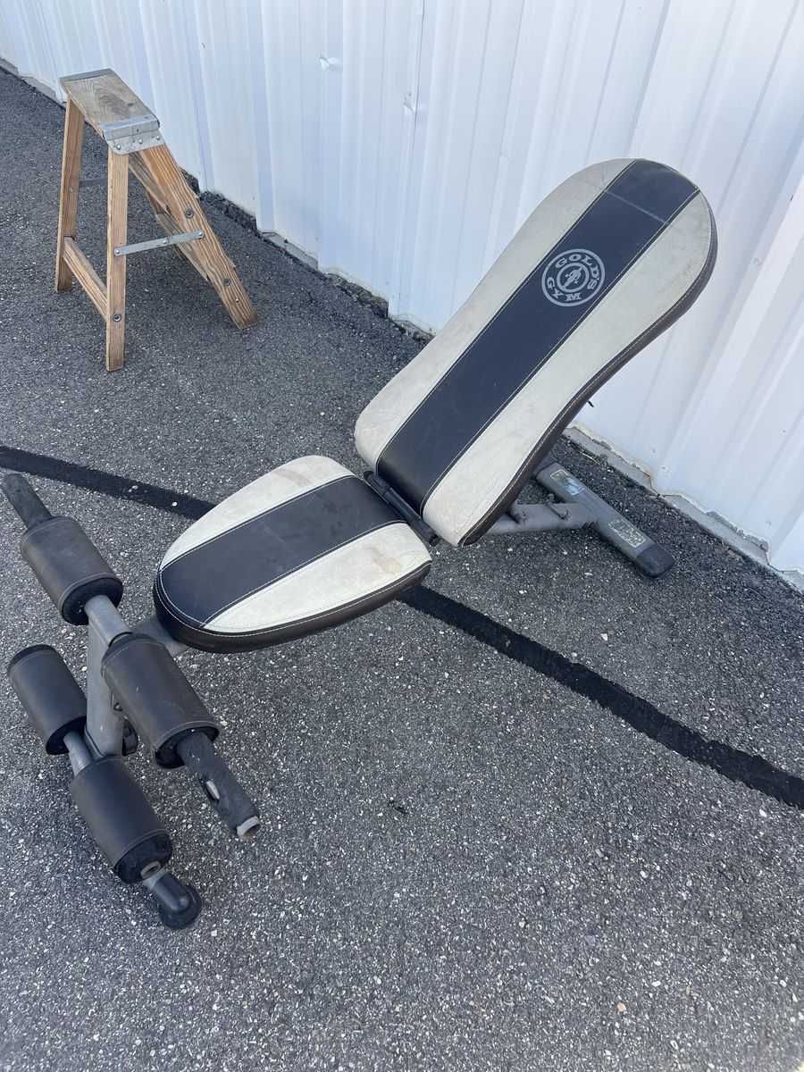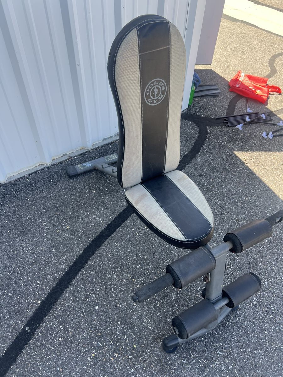 GooglePayThis item is a Gold's Gym XR 5.9 Adjustable Slant Workout Weight Bench. Features a multi-position design that allows for flat, incline, and decline settings to target different muscle groups. Equipped with four-roll leg lockdowns for leg extensions and other lower body exercises. Designed to adapt to various fitness levels, from beginner to seasoned lifter.