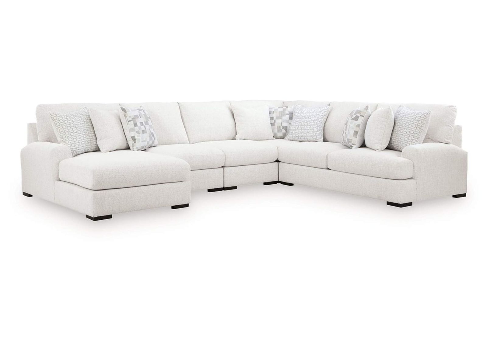 Includes 5 pieces: left-arm facing loveseat, wedge, 2 armless chairs and right-arm facing corner chaise