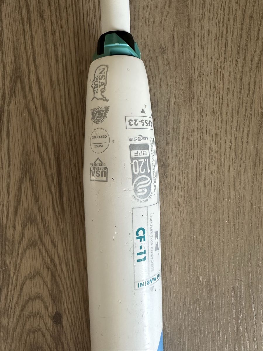 ApplePay2023 DeMarini CF Fastpitch Softball Bat (model CF5S-23) with an -11 drop weight.