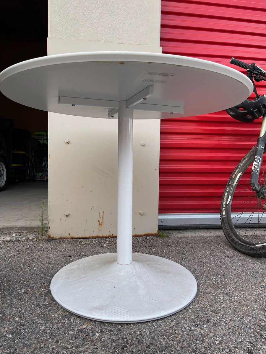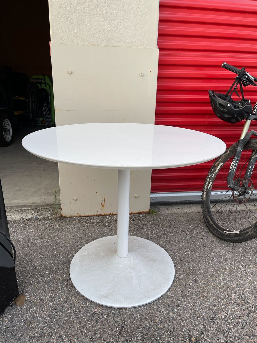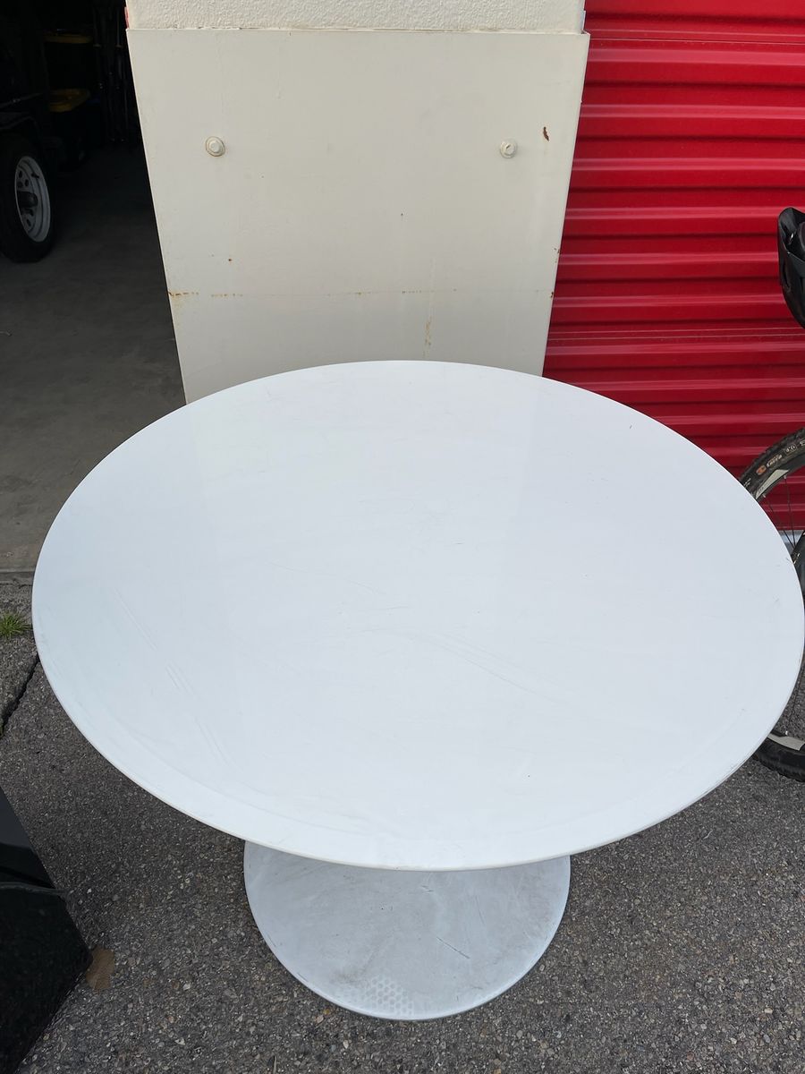 VenmoSelling a clean, modern white round table with pedestal base. Perfect for a dining area, office, or workspace.