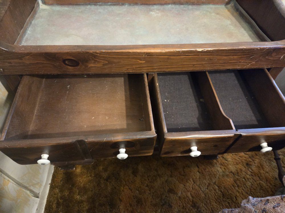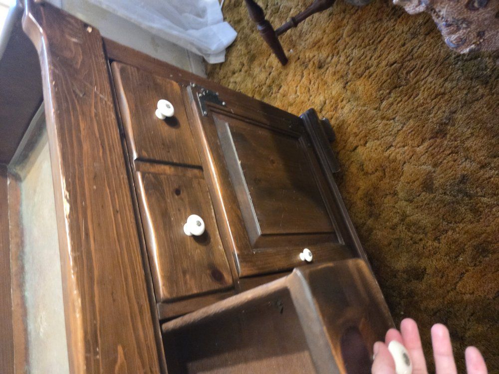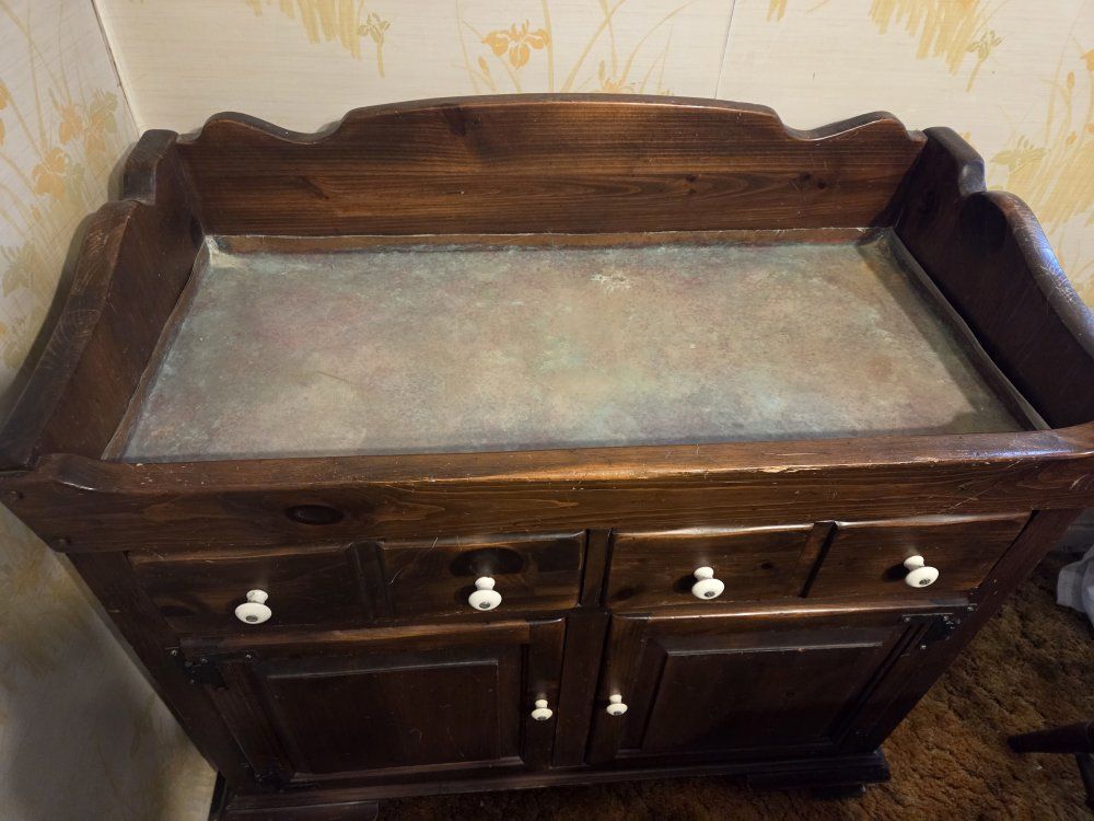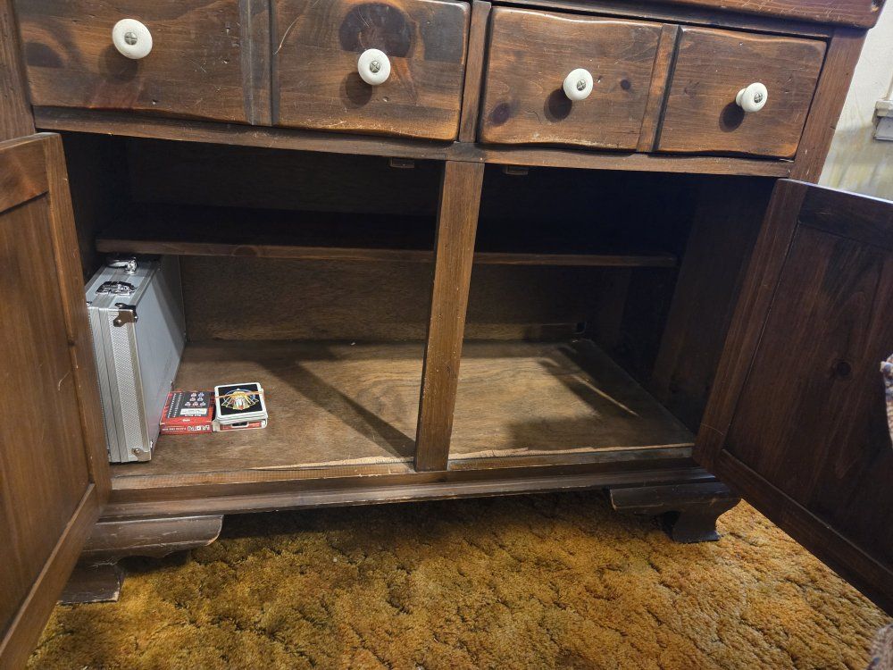 Beautiful, authentic Ethan Allen dry sink from the "Old Tavern" or "Heirloom" collection. This is a high-quality, solid wood piece—not particle board—featuring the iconic craftsmanship and durability Ethan Allen is known for. Perfect for a DIY project