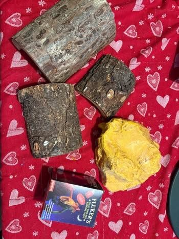 ApplePayThree different size wooden hides, one ceramic, and fluckers night time heat bulb. Bulb was never used.
