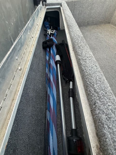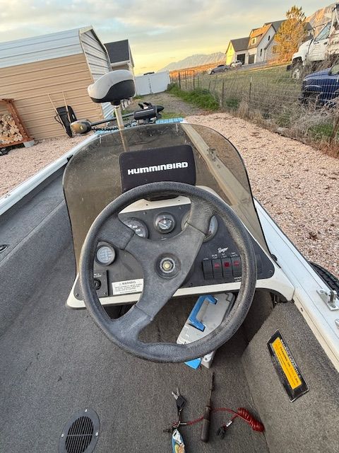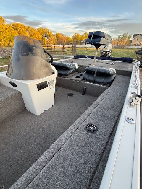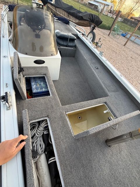 Bimini shade top, boat cover, plenty of storage plus rod holder if you don’t have rods over 7ft, bilge pump, two live wells with working aerator.
