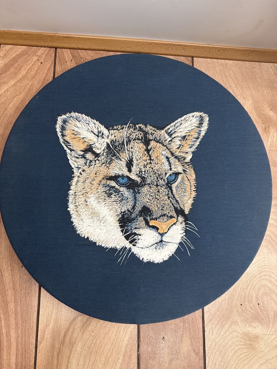 CashAppSimple & beautiful print on canvas of a mountain lion is looking off into the distance. Very good detail in the fur. Eyes are blue like the canvas background. Measures approx 18” in diameter. Cash, Venmo, or CashApp