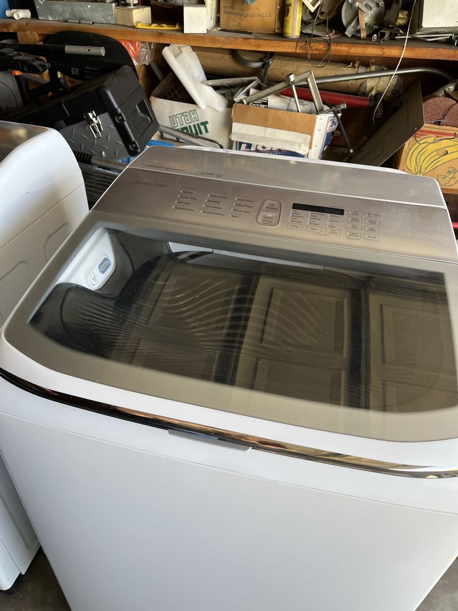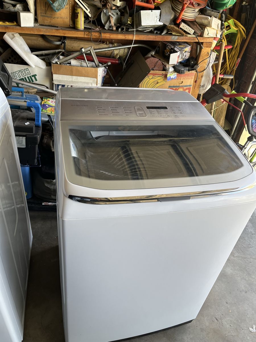 Washer Samsung WA50K8600AW 27 Inch Top Load Washer with Activewash Sink, SuperSpeed Cycle, Self Clean, Vibration Reduction Technology, 5.0 cu. ft. Capacity, 12 Wash Cycles, 1,100 RPM, Integrated Touch Controls, Smart Care and 5.0 cu. ft. Capacity: White