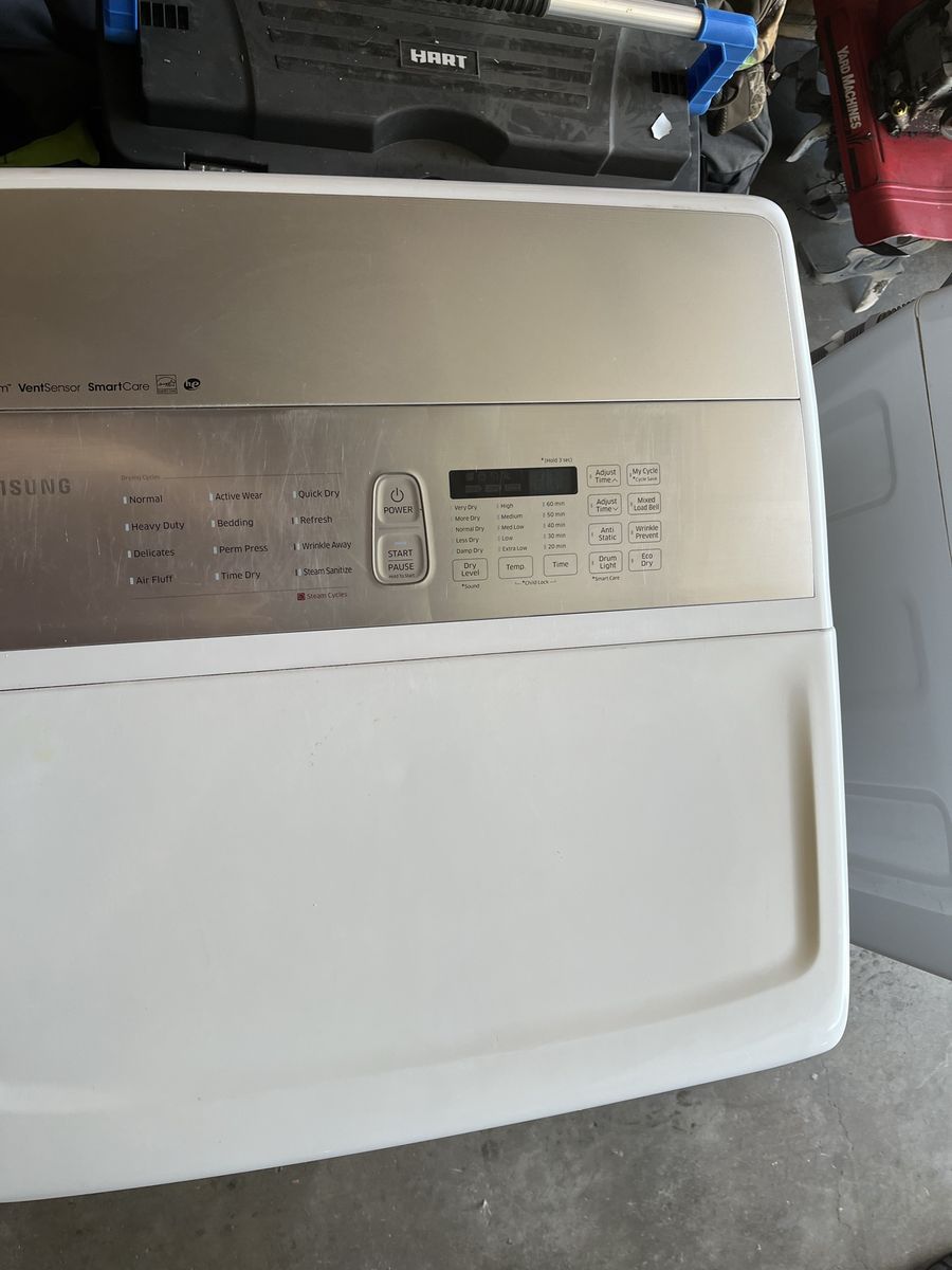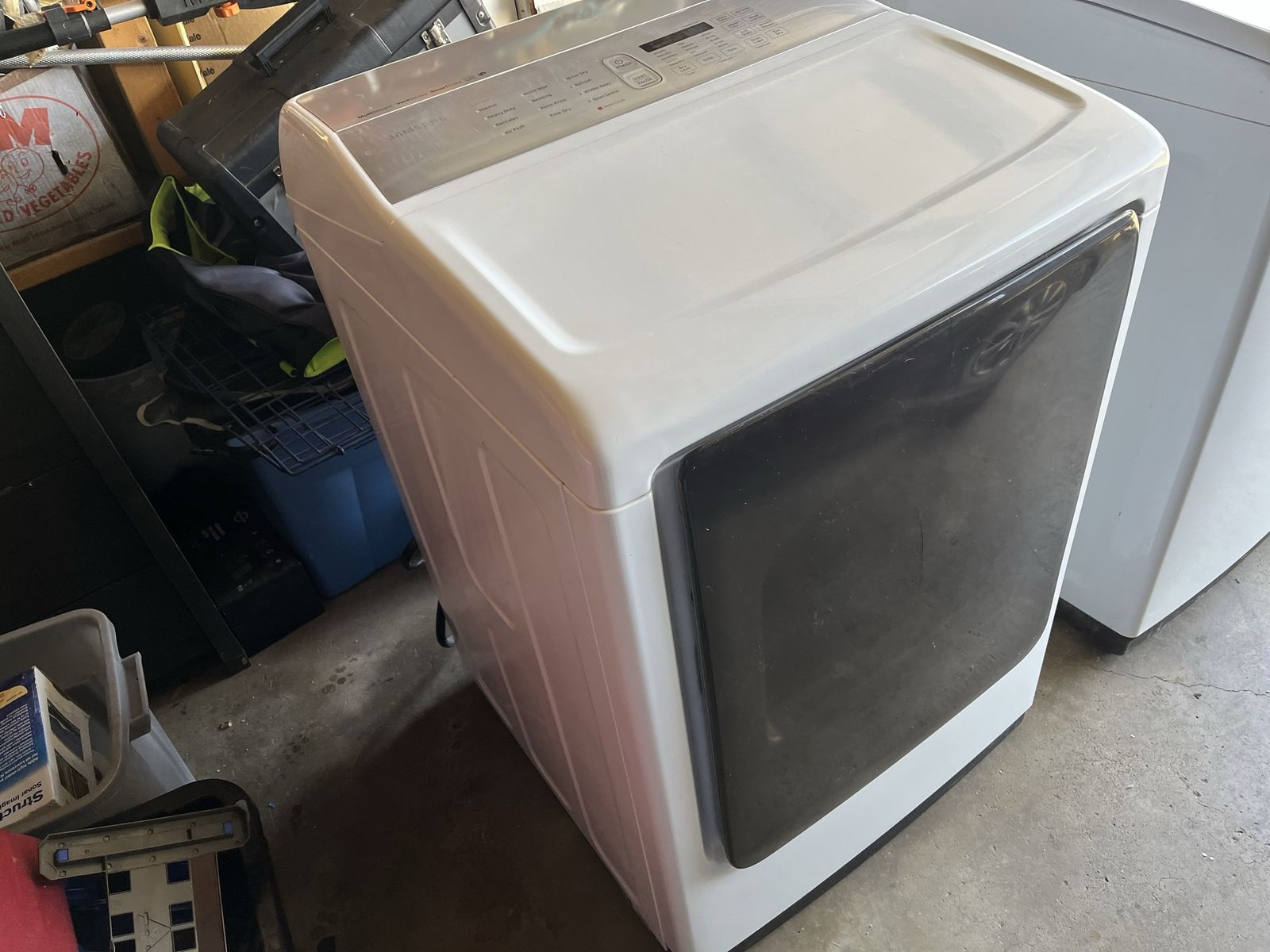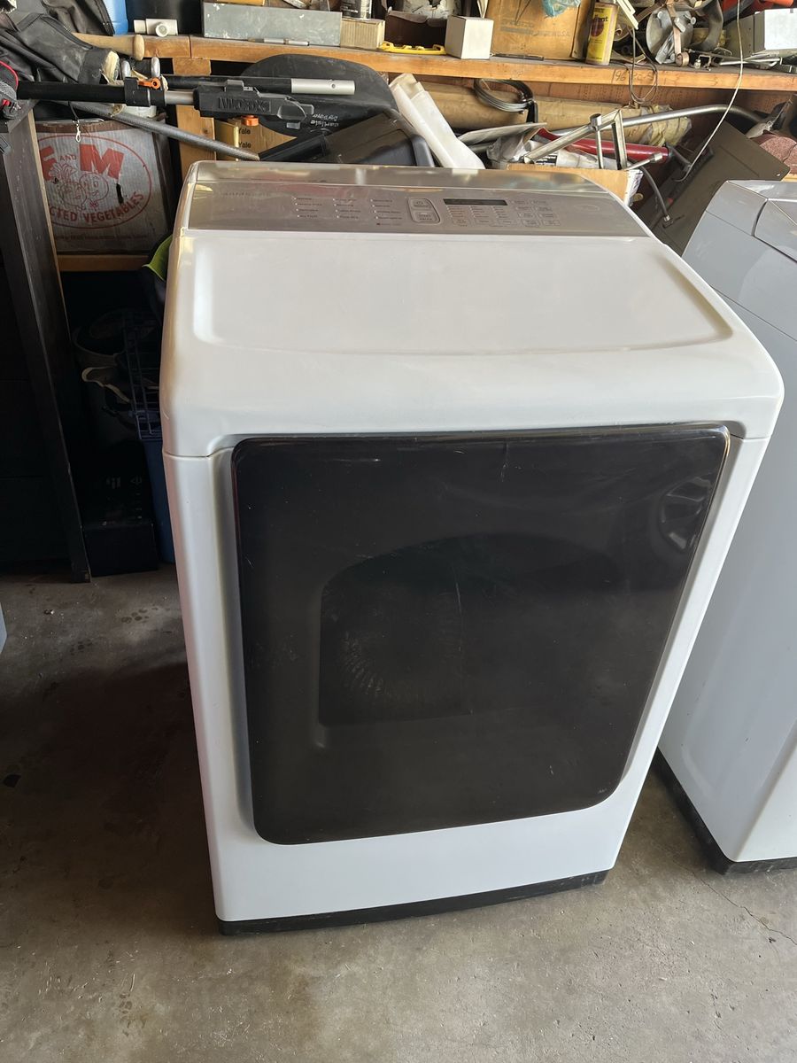 DryerThe Samsung DV50K8600EW is a 27-inch, 7.4 cu. ft. capacity front-load electric dryer featuring Multi-Steam technology for removing wrinkles and odors. This Energy Star-rated appliance includes 12 preset cycles, 11 options, sensor dry technology to optimize drying times, and a stainless steel drum with internal light.
