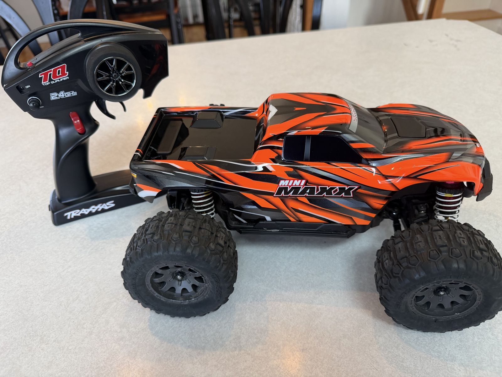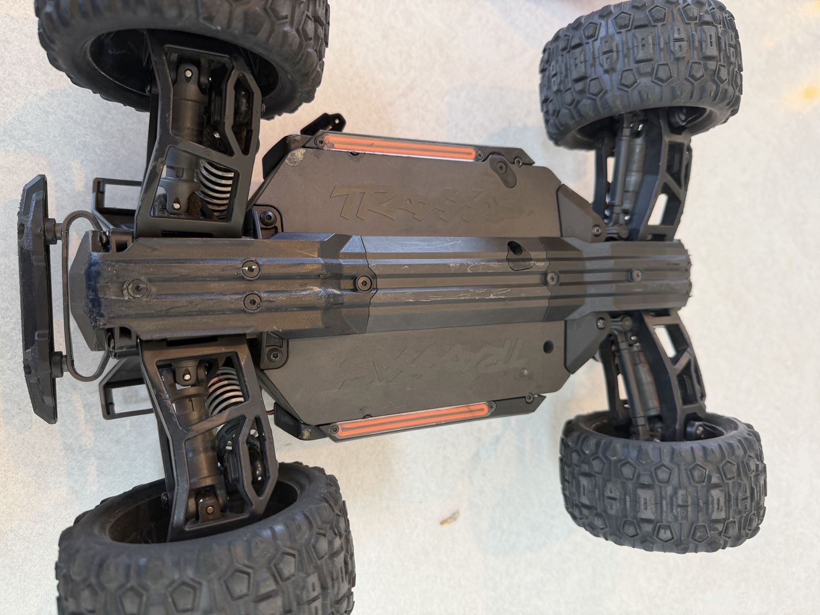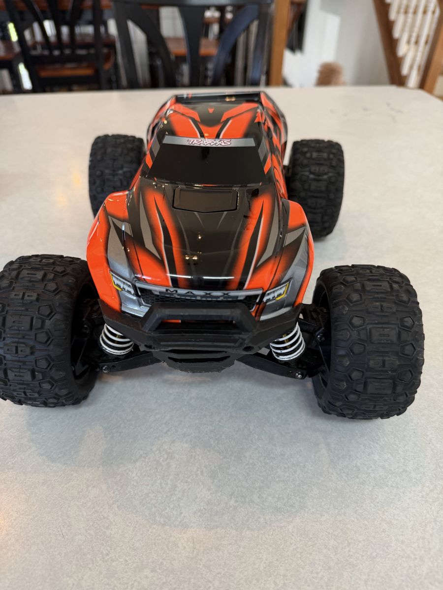 Traxxas Mini Maxx in excellent condition. Has underglow lights and Traxxas lighting power supply. New body. Ready to run, no issues. Also includes 2s Lipo battery and spare basher body. Asking $230. Not interested in trades.