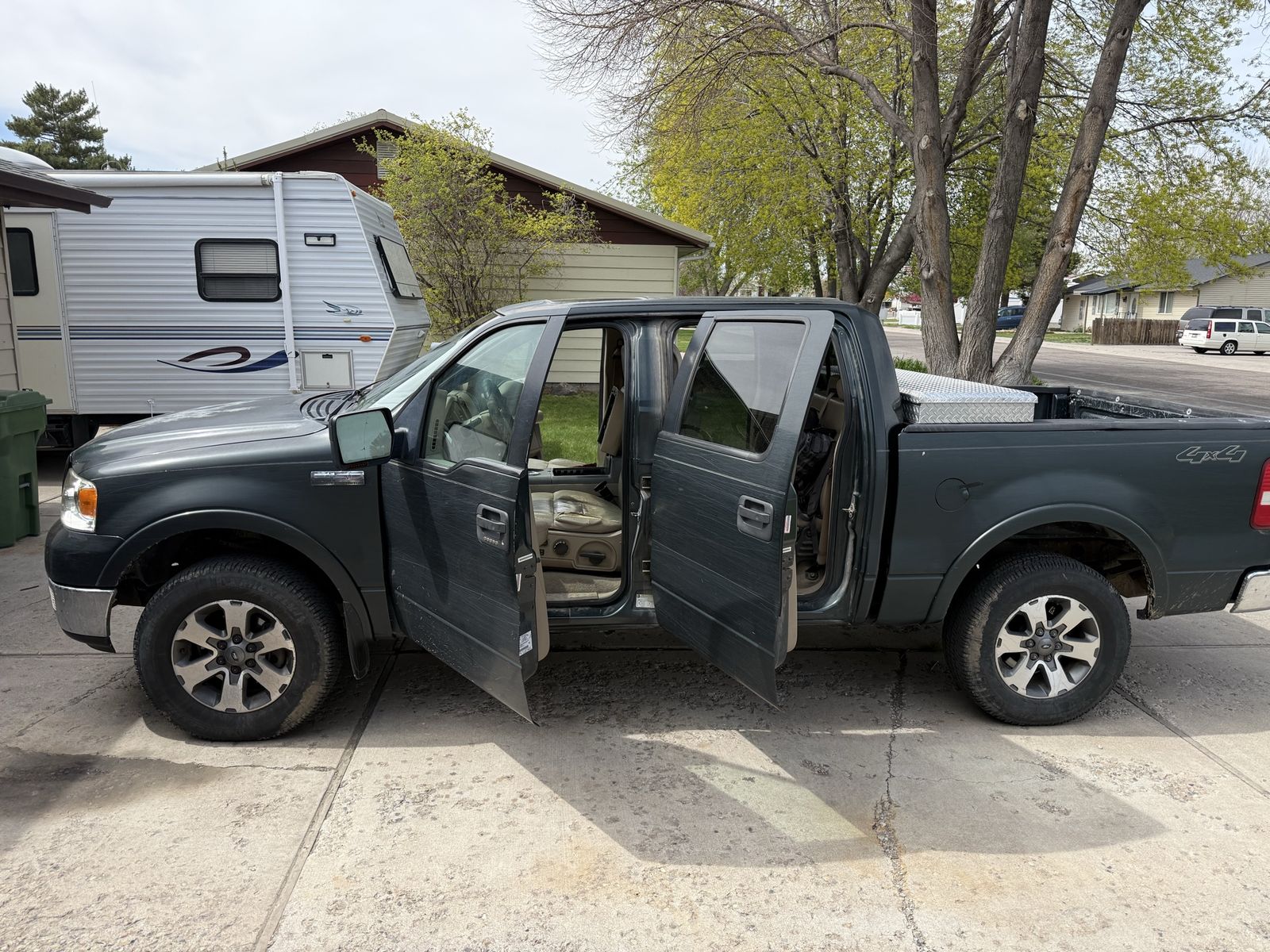 selling my 2005 ford f-150. i have had it for 5 years and its done well for me, its not pretty by any means but for a hunting truck or mountain truck it would be perfect. 5.4 trition pros: -lariat -automatic -has front end work done -has backup cam -has upgraded exhaust -has stock 8” sub -has new rims -tires in decent shape -heated seats work well -2 fobs -remote start -clean title cons: -it has a check engine light for some sensors -abs light is on -it has 268,000 miles -the interior is pretty beat -exterior is scratched up -the dash does glitch randomly -bad fuel milage -has some dents