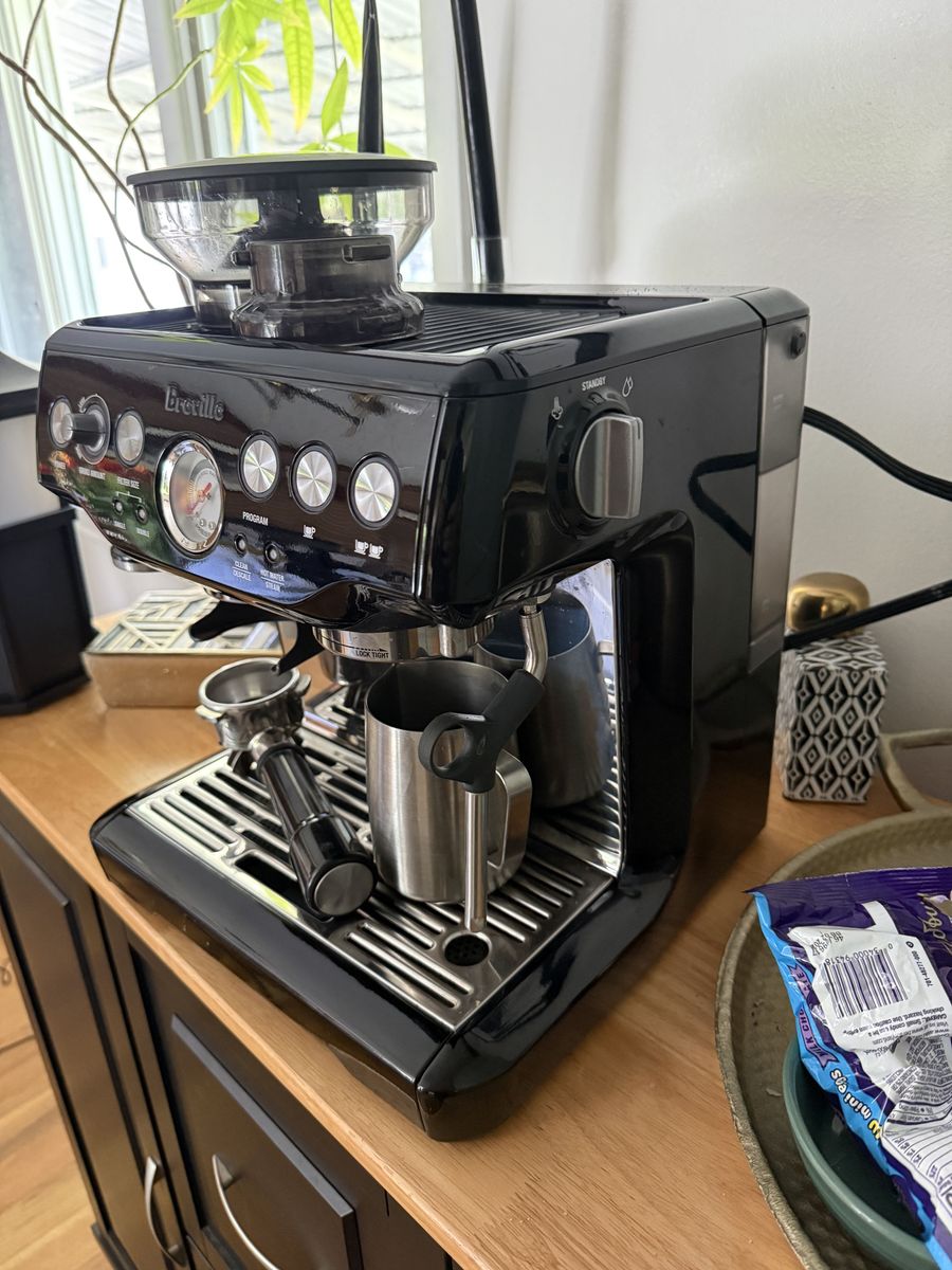 VenmoGreat Breville Espresso Machine. I've had it a little over a year. Just purchased a newer one. I've descaled it regularly and everything works great!