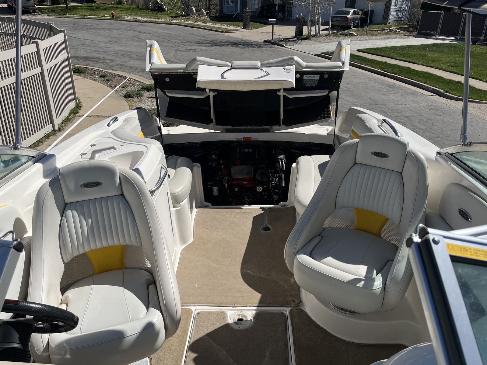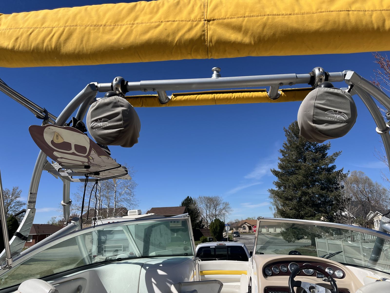 Extras: Comes with various life vests of all sizes, two good tubes, wake board, several sets of water skis, knee board, and various tow ropes.
