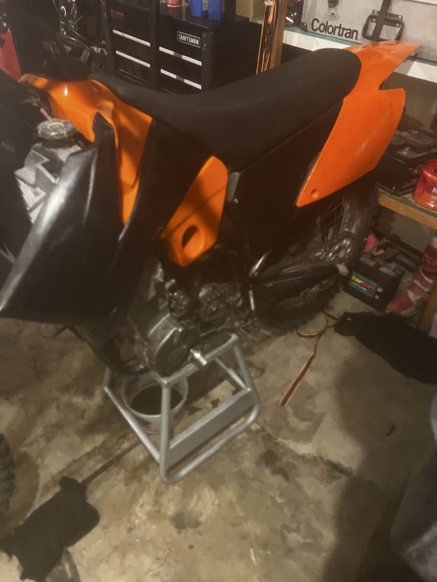 I got this bike on a trade. The bike runs, but needs work bike needs the carburetor to be cleaned and gone through. It needs an ignition cover because they put JB weld on it and the bottom oil plug needs replaced. They stripped out the head of it, but not the thread in the block. Be good for fix up or parts and it has a full FMF power bomb exhaust on itwith silencer I don’t have the time or money to fix it right now, but if it doesn’t sell I will fix it up over the summer and sell it for more title in hand. It does have an out-of-state title from Florida all signed off and ready to go like I said the bike needs work and the bike is as is 2000 or best offer I need it gone