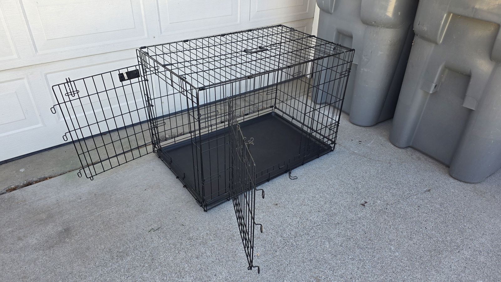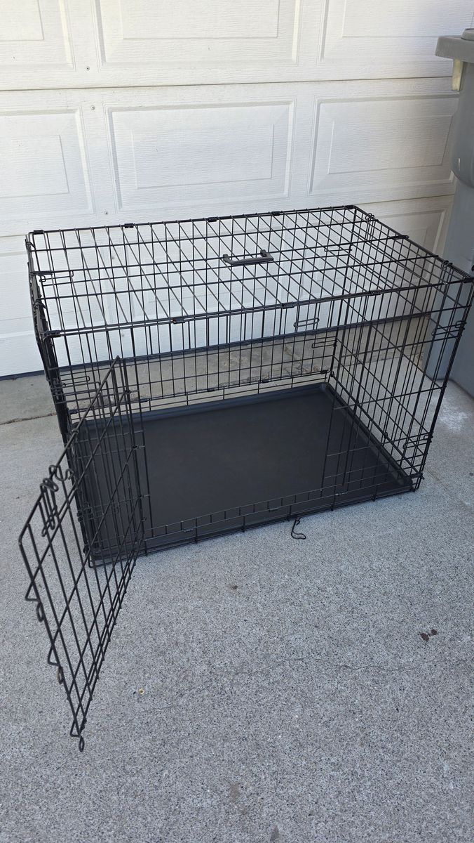 VenmoCollapsible wire dog crate with 2 doors for convenience and versatility. Bottom leak proof tray is removable for easy cleaning. Includes handle for easy carrying.