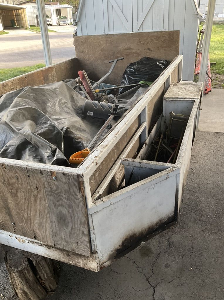 Great for hauling trees and junk It just could use new fenders and a paint job Inside bed dimensions are 12feet 7inches in length by 5ft 7inches wide. 2 inch ball. Heavy duty axle