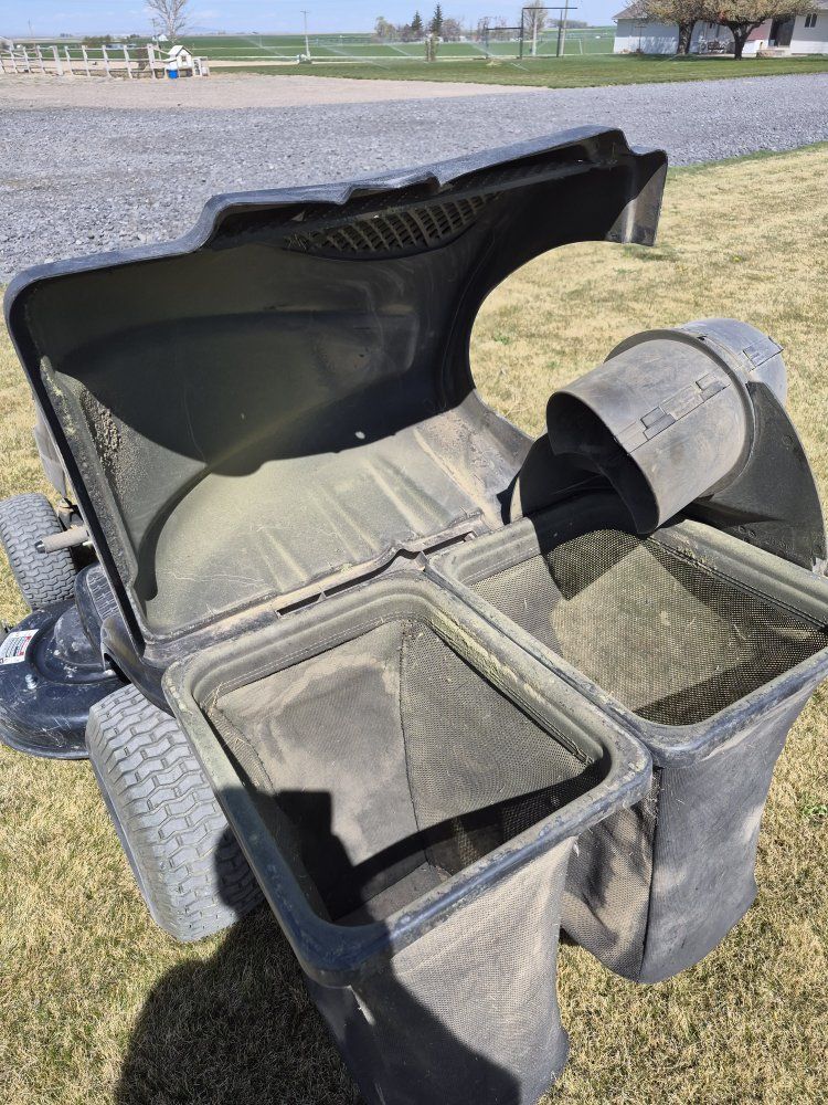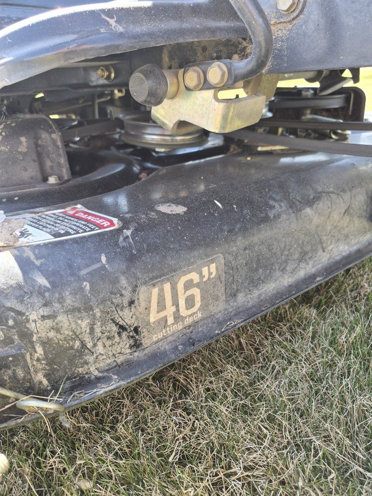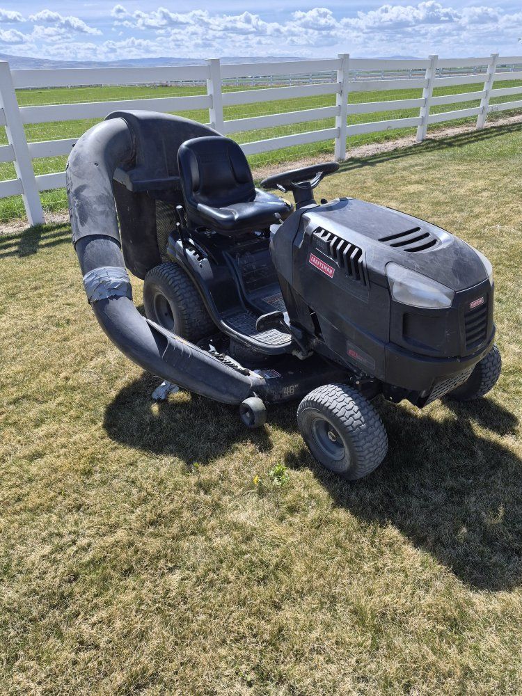 Lawnmower for sale! 46 inch deck with a bagger system. Briggs and Stratton 17 hp engine starts every time. All tires are good condition no leaks. Still a great mower i just got a bigger one. Cheapest ride-on you'll find call or text me with questions.