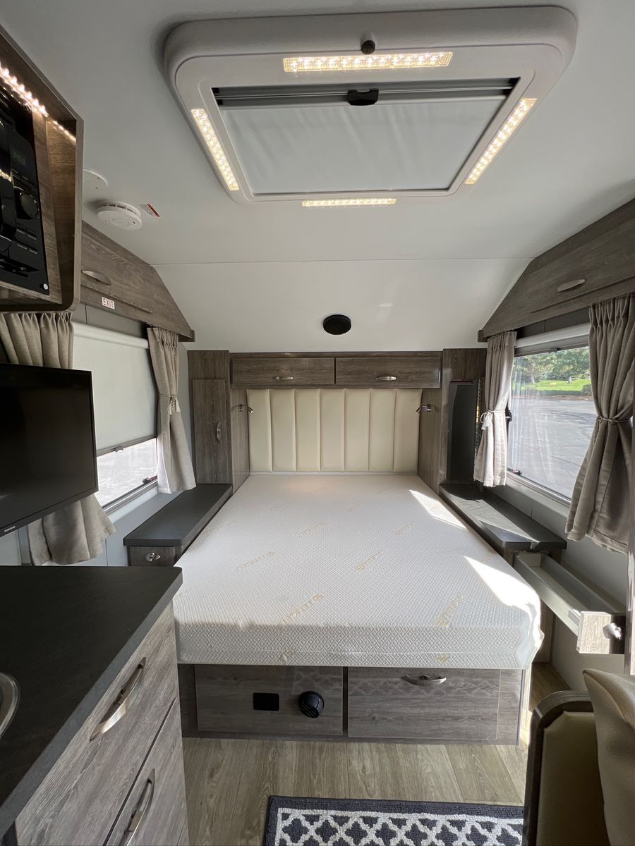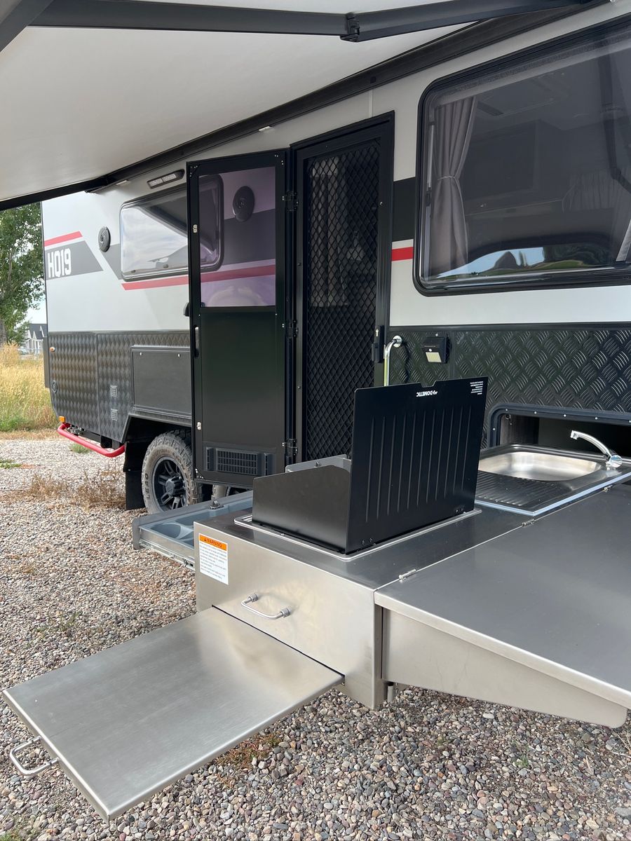 I am listing this unit because my husband passed away and I am no longer able to use this trailer. This trailer was purchased from ROA off road in 2021. We did over $20,000 in upgrades to this trailer making it a one of a kind. This unit has only been used twice and when it’s not in use its been covered up as you see in the pictures. Here are the upgrades performed: diesel furnace- Webasto diesel furnace in place of propane furnace. Massive upgrade! winter package to make trailer 4 seasons, ducted heat into the underbelly with underbelly being enclosed. easy winterizing valves- makes winterizing the trailer much easier sewer hose holder- a container for the sewer hose weboost- boosts cell phone signal dish antenna furrion backup camera- attached to rear of trailer to see for backing up custom surround sound mchitch- much better hitch to use for off roading and hooking up the trailer. victron solar controller 50 amp- allows for you to connect via bluetooth to see whats going on with your solar and much better appliance upgraded propane tanks to 30lbs- factory comes with 20lb tanks upgraded ac unit to houghton quiet ac with remote- Much better ac unit that is much quieter, comes with a remote, and a dehumidifier. maxair fan- Upgraded from stock factory fan much more powerful.
