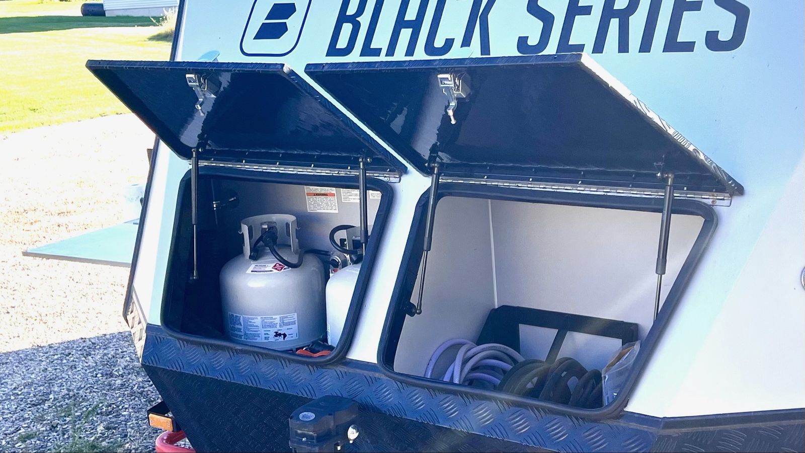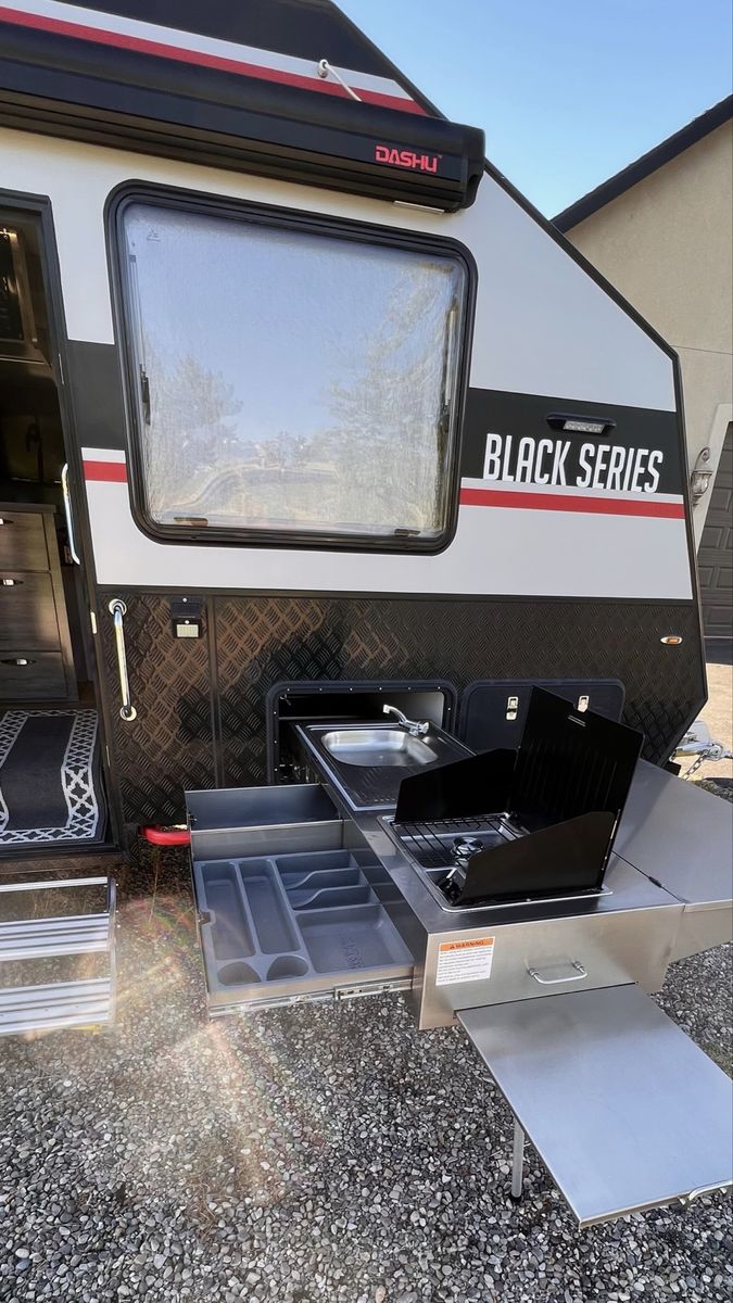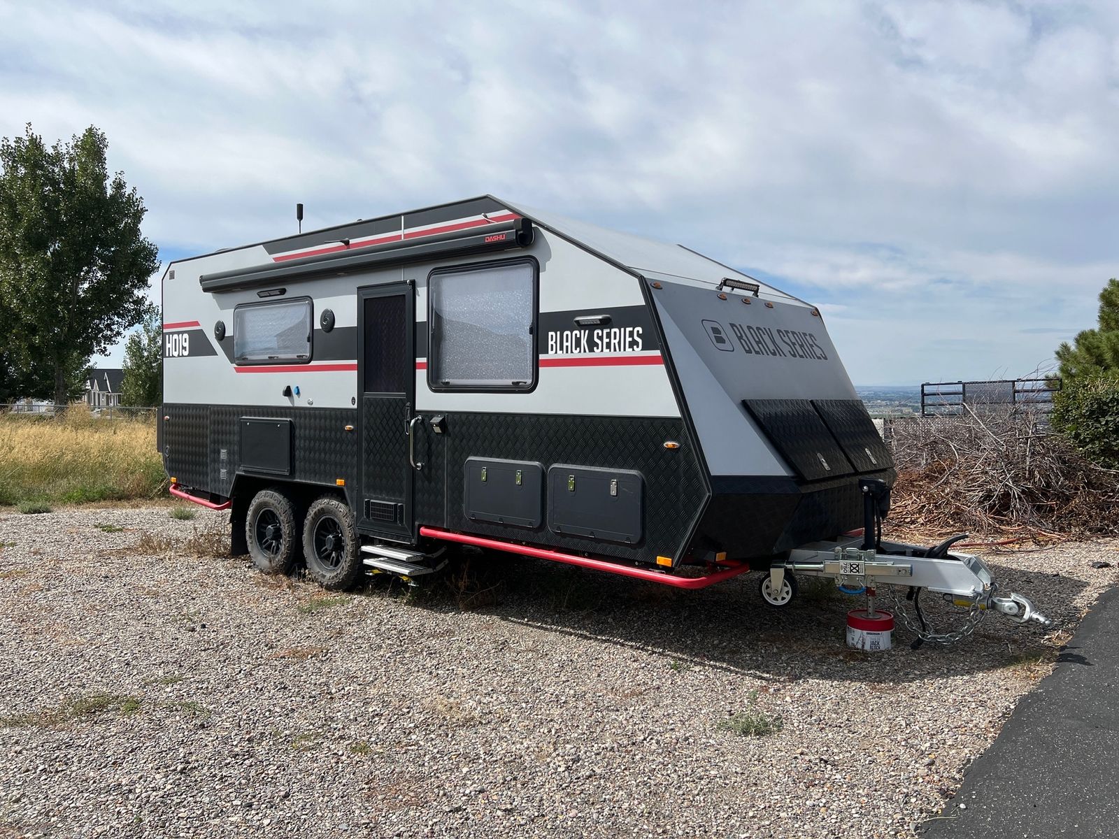 The 2021 BLACK SERIES HQ19 is a top-of-the-line travel trailer that combines luxury and functionality for your outdoor adventures. Practically brand new and ready to hit the road. Used for 1 trip. The BLACK SERIES brand is known for its high-quality, rugged construction that can withstand any terrain, making it the perfect choice for off-the-grid camping trips.2021 Black Series HQ19