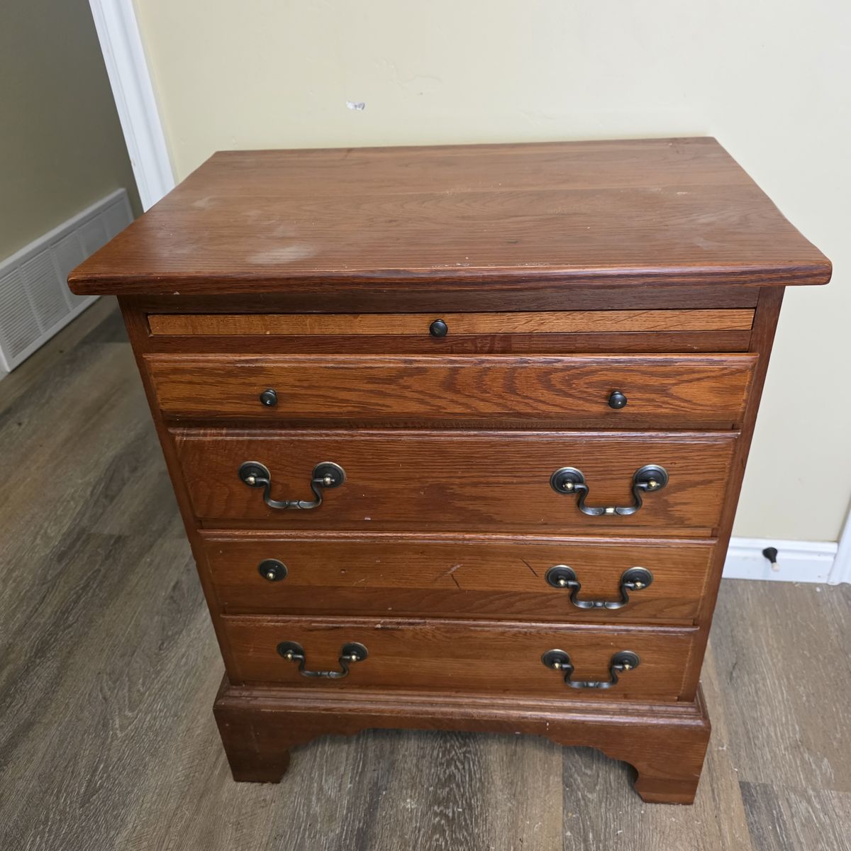 Solid Oak bedroom set. Hardware on dresser and nightstand included - handles just need to be added (they are included).