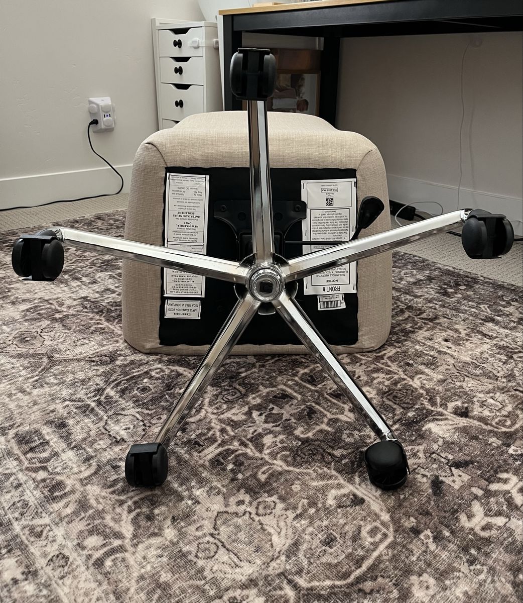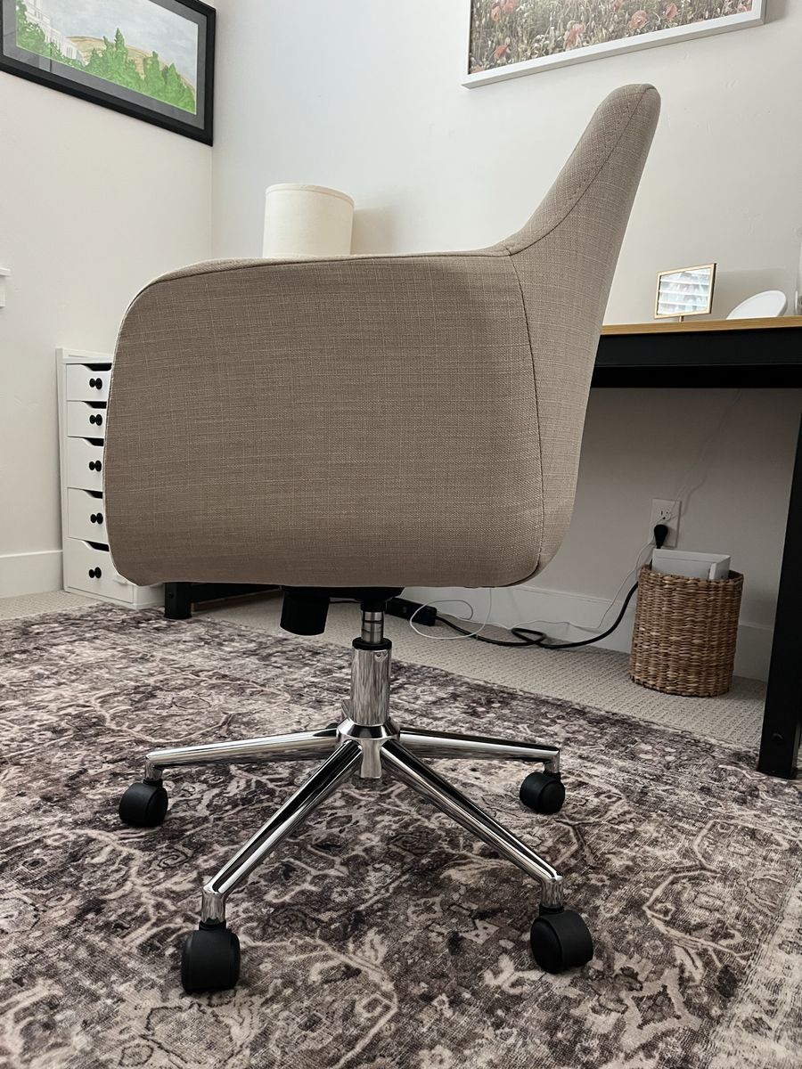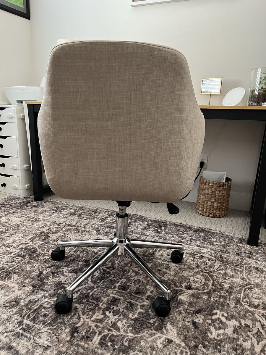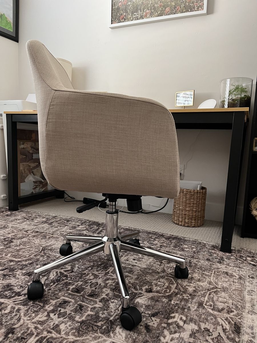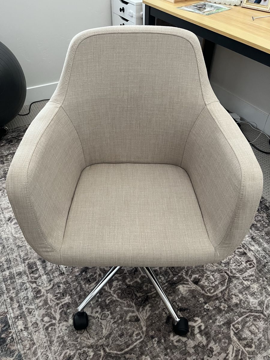 VenmoDescription: Beige office chair in great condition, perfect for a home office, study space, or workspace. Comfortable cushioning with a clean, neutral look that matches any setup.