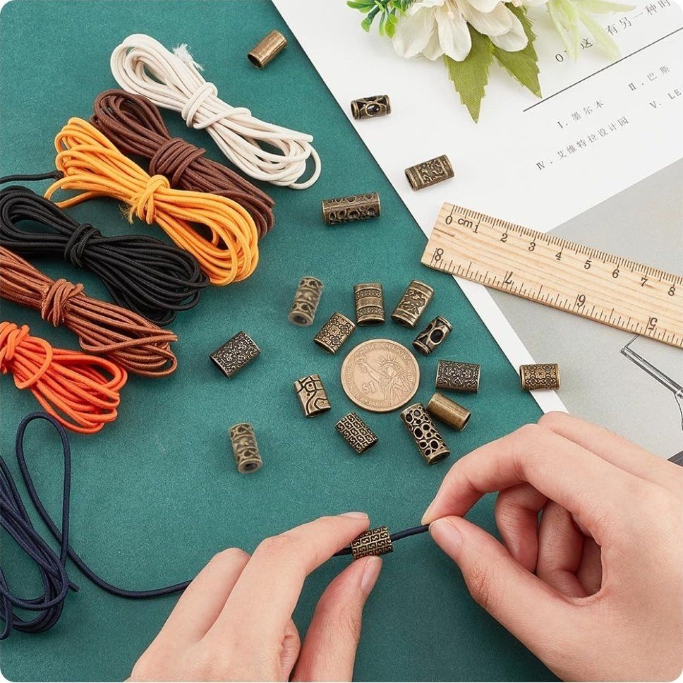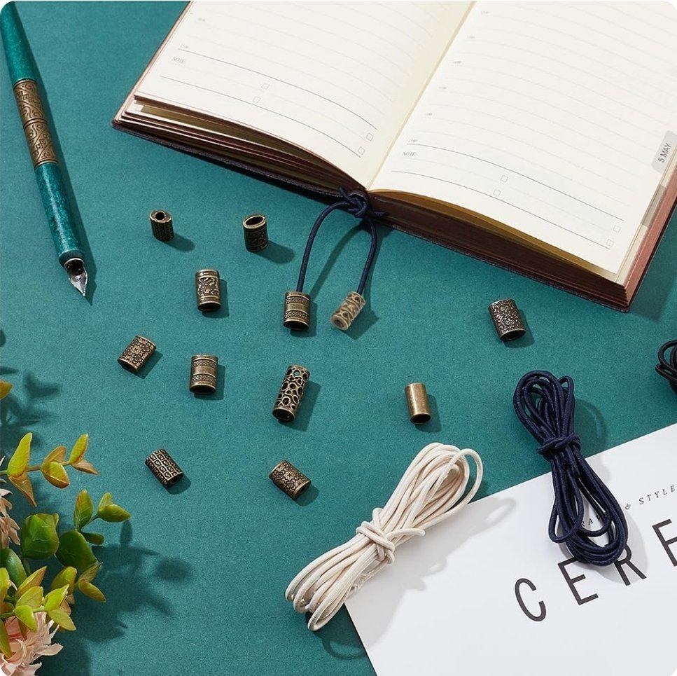 BENECREAT 17.5 Yards Elastic Bands for Notebook, Polyester Elastic Stretch Cord, Traveler's Notebook Elastic Band DIY Kit with 20 Alloy Risers for DIY Bookmark Making