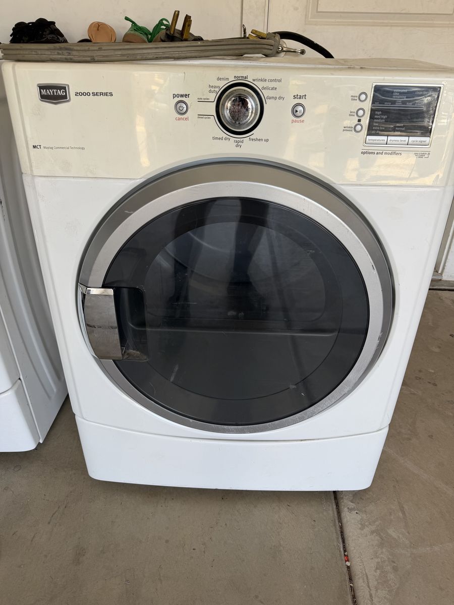 ApplePayMaytag 200 series washer and dryer set. Electric dryer comes with four pronged wire attached but have an extra 3 prong if you need it. Both in good working condition just got a new set and don’t need these anymore. Dryer does have a squeak to it when running but I just cleaned and put wd40 on the bearings. Call or text with questions.