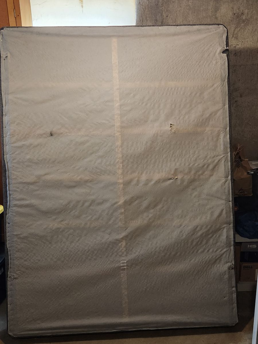 Queen size box springs, no broken parts inside, three small holes on the bottom side. Top side good to go, take out of my basement.